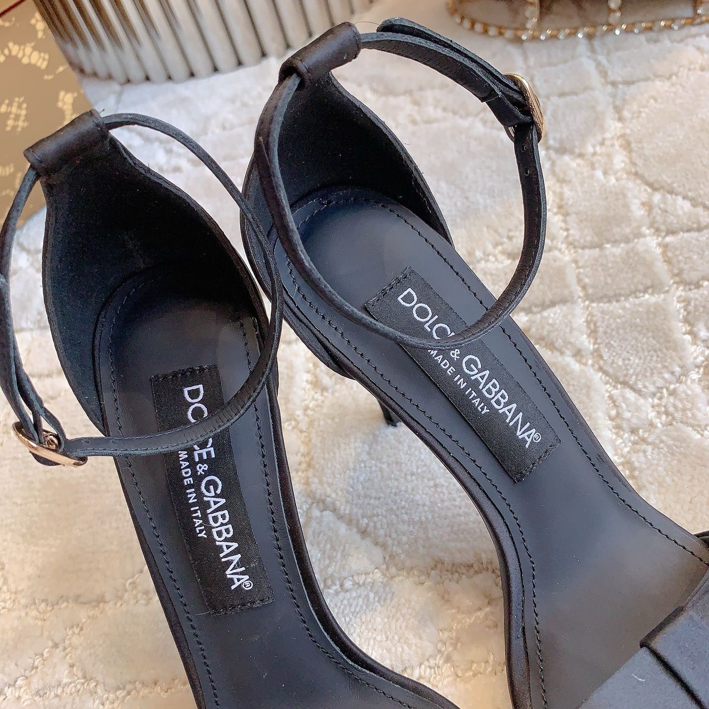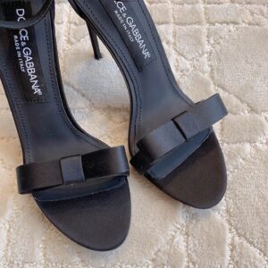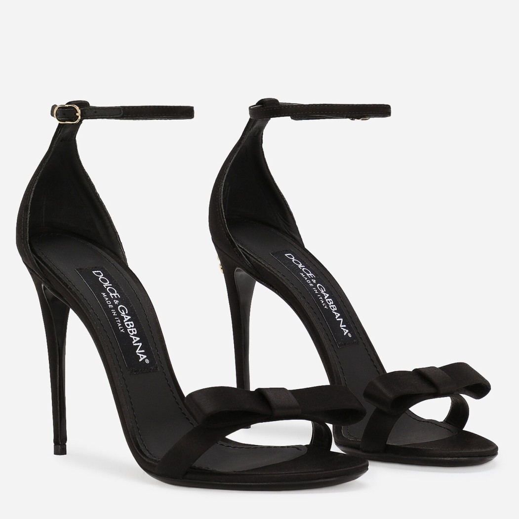 Indulge in luxury with these black satin sandals from Dolce & Gabbana. The bow detail adds a touch of femininity, while the adjustable ankle strap ensures a perfect fit. Crafted with a leather footbed and sole, these sandals are as comfortable as they are stylish. Elevate any outfit with these elegant, sophisticated sandals that are sure to turn heads and make a statement.