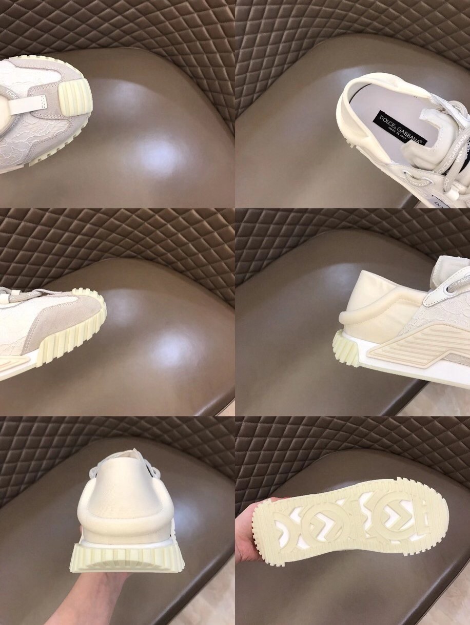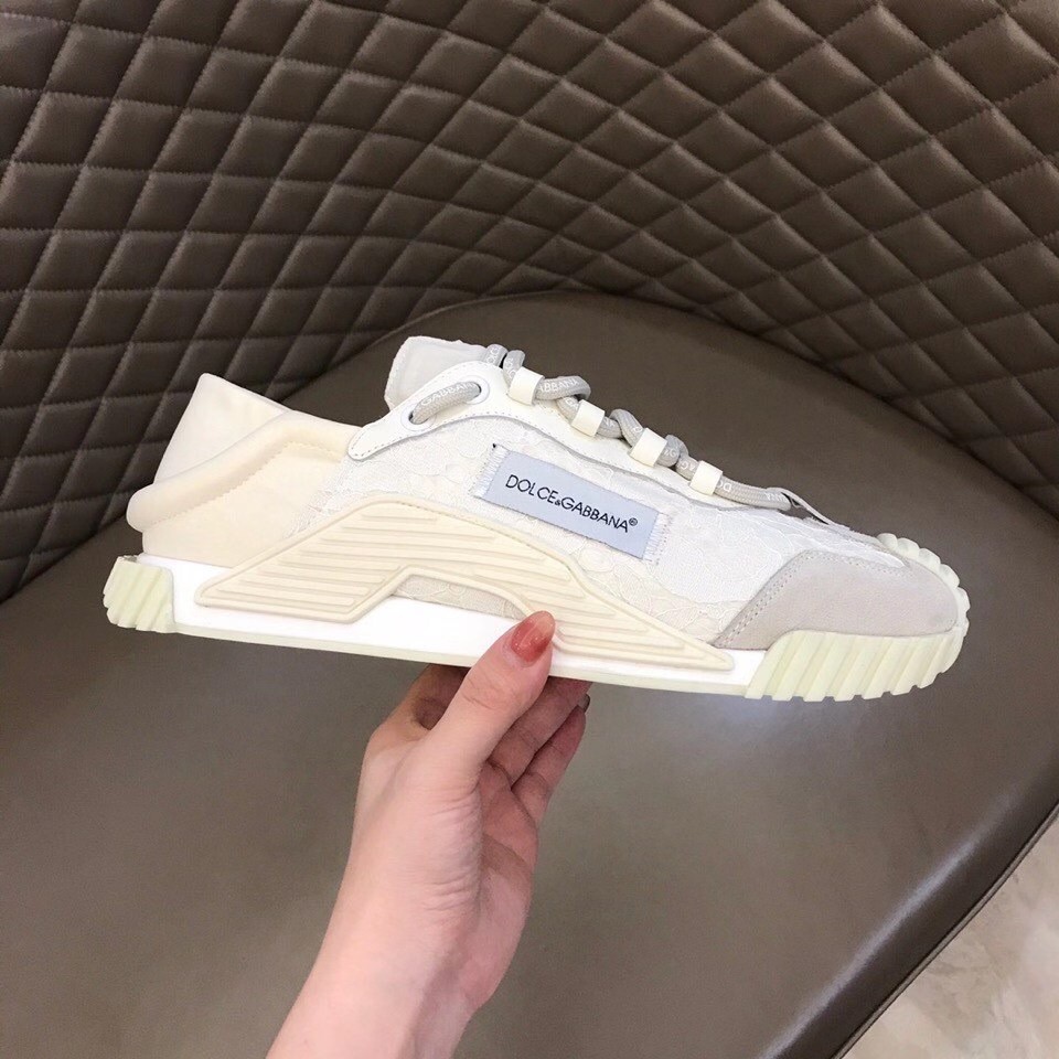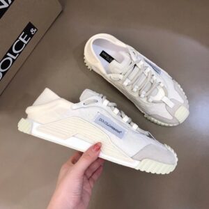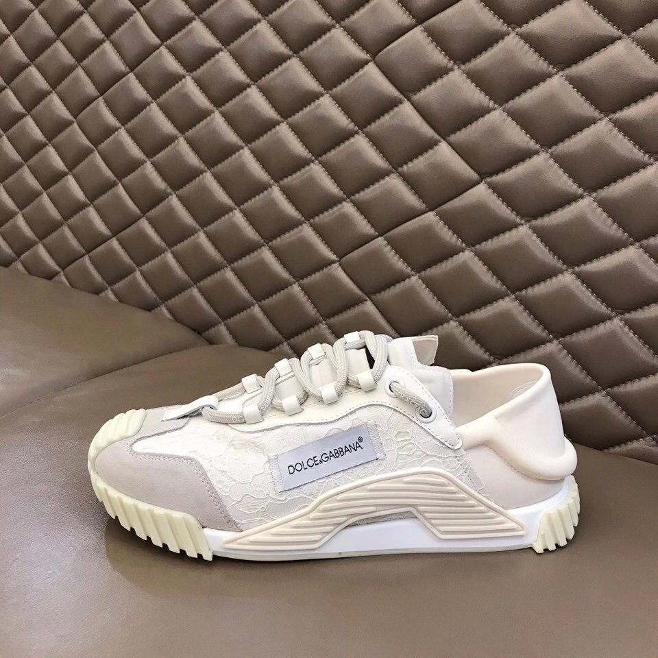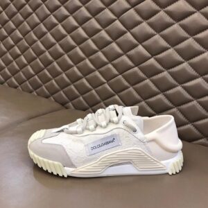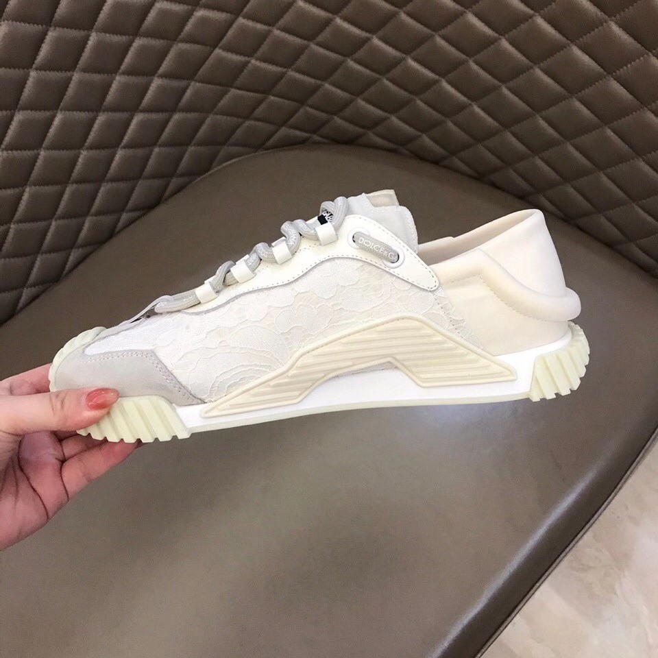 These white NS1 sneakers from Dolce & Gabbana infuse a typical sportswear silhouette with femininity. Made from lace uppers, they’re trimmed with futuristic ridged rubber and cushioning knit detailing at the tongues and heel counters. They’re finished with logo detailing for unmissable recognition.