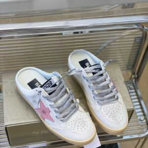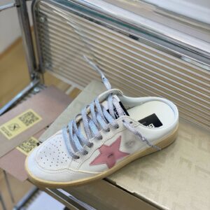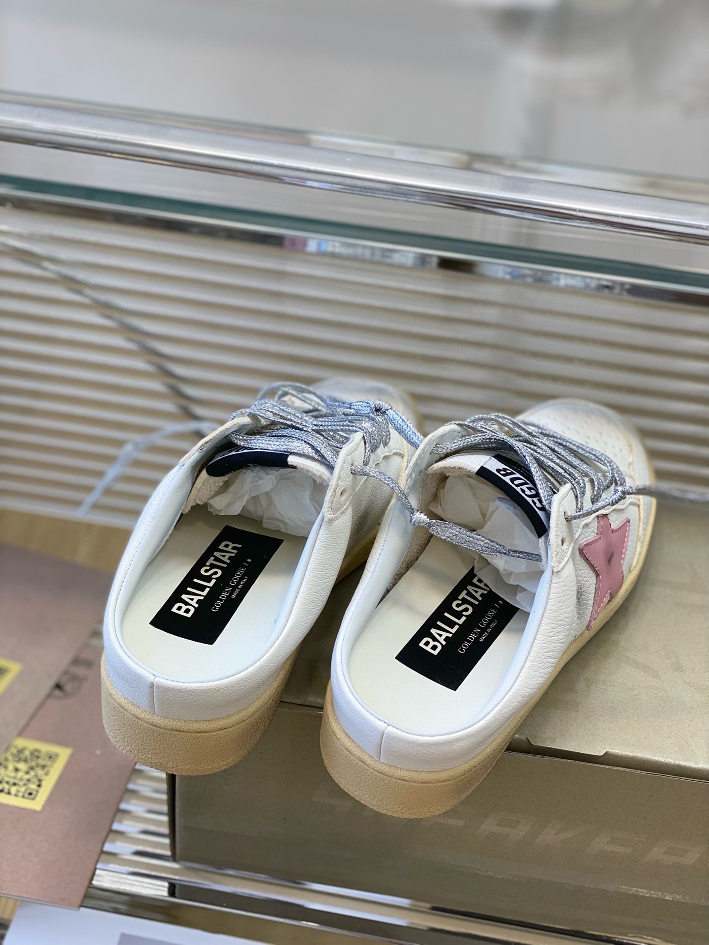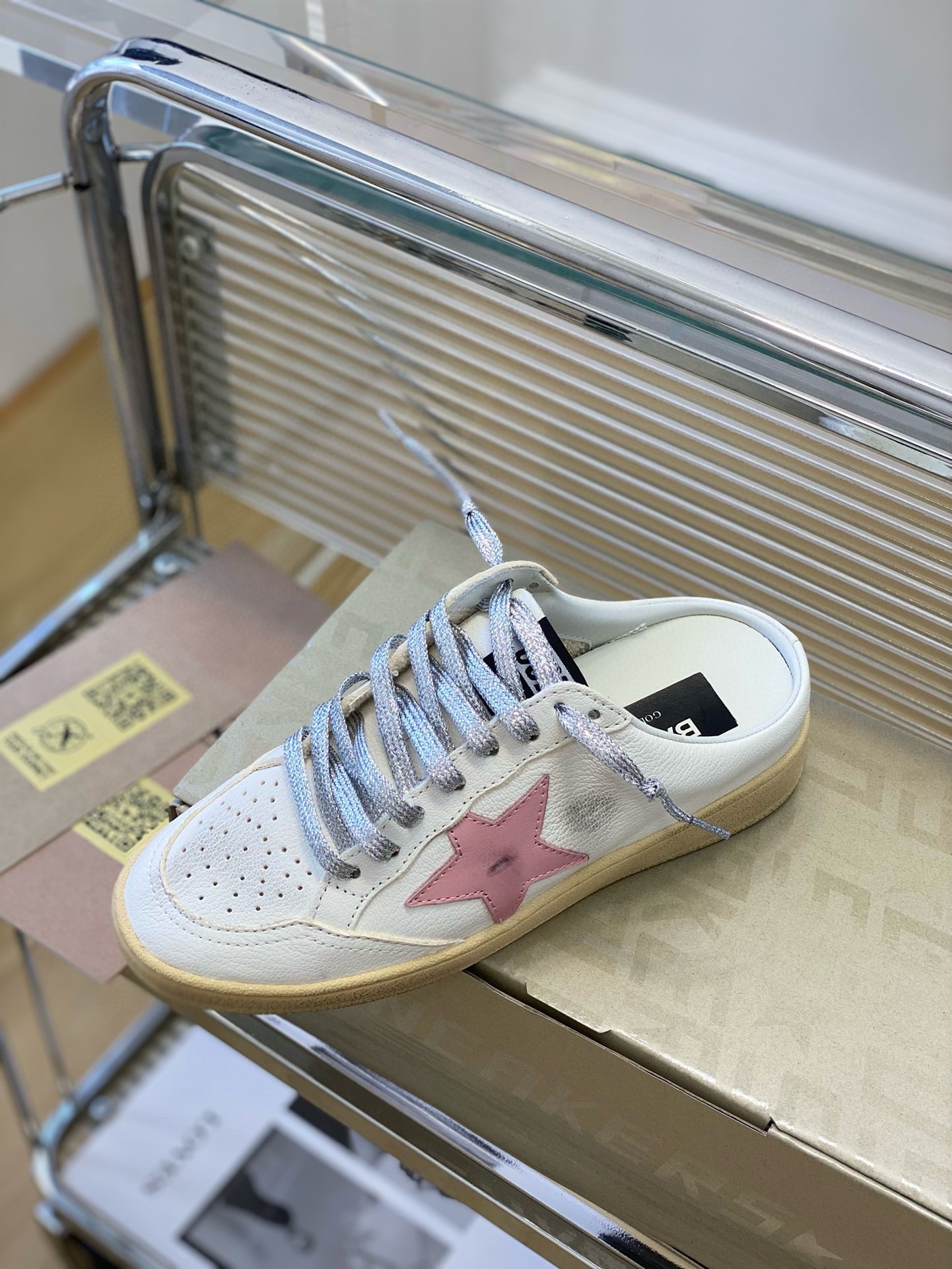 Dreaming of the Eighties. Our Ball Star sneakers have an American college vibe and a feeling of the basketball scene around at the time. This sabot version features a white nappa leather upper accentuated with an old-rose leather star. And the silver lurex laces add the finishing touch: beautiful things that never go out of fashion.