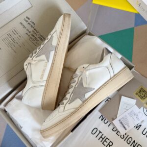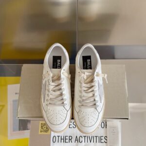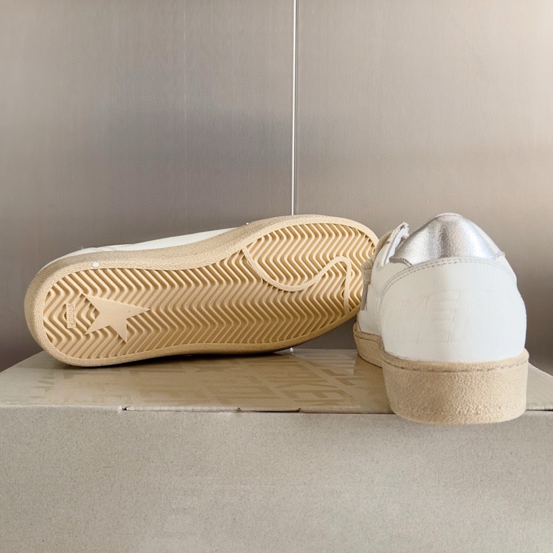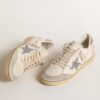 Dreaming of the Eighties. Our Ball Star sneakers have an American college vibe caught between a hoop shot and a skateboard ride. This model with a white leather upper features an ice-gray suede star and a silver metallic leather heel tab. And the cream-colored laces add the finishing touch: beautiful things that never go out of fashion.