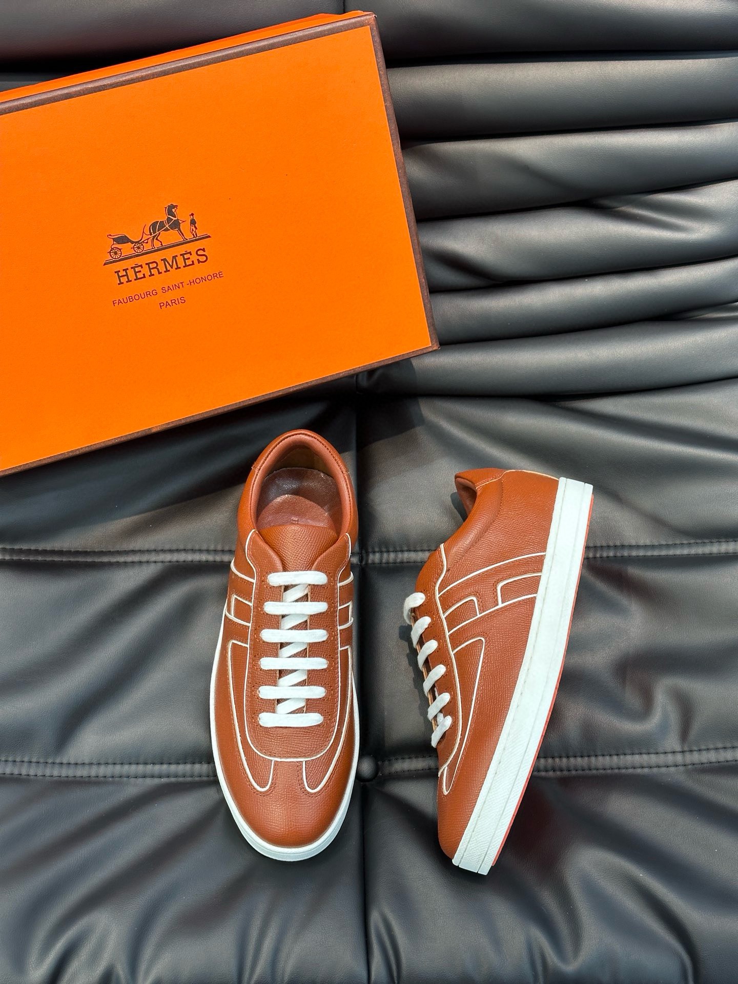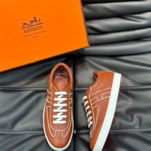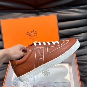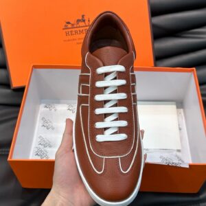 Hermes Boomerang Sneakers In Brown Epsom Calfskin