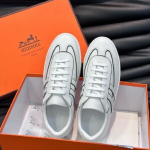 Hermes Boomerang Sneakers In White Epsom Calfskin