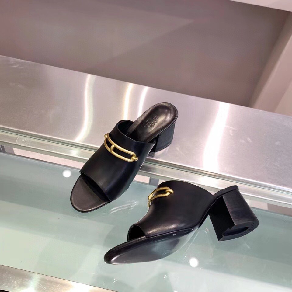 Hermes continues its Roulis with these Camilla mules. Set on high block heels in 60 mm, they’re secured by calfskin leather vamp complete with iconic aged gold plated “Roulis” buckle. Let yours lend a high-octane finish to both on and off-duty ensembles.
