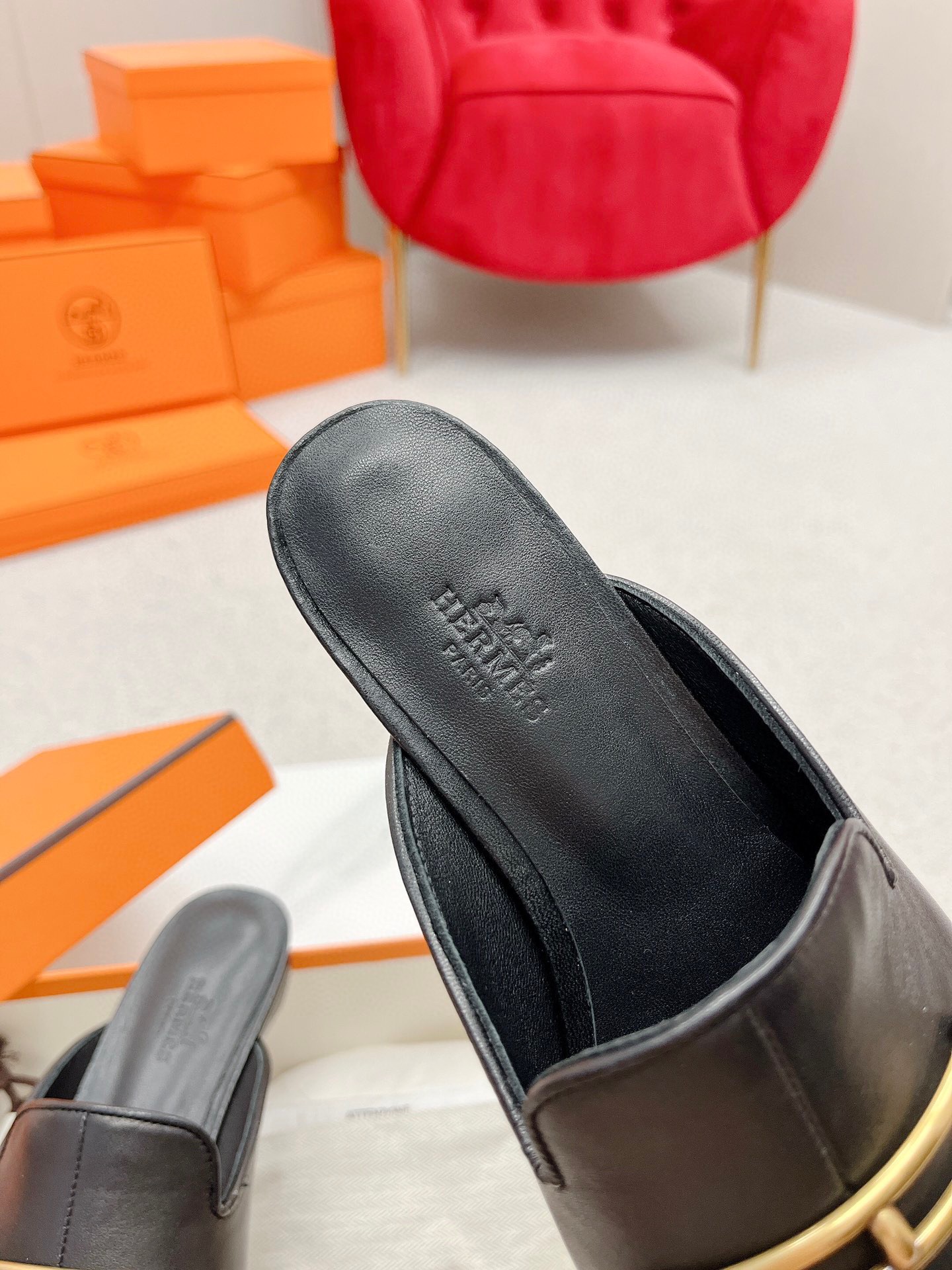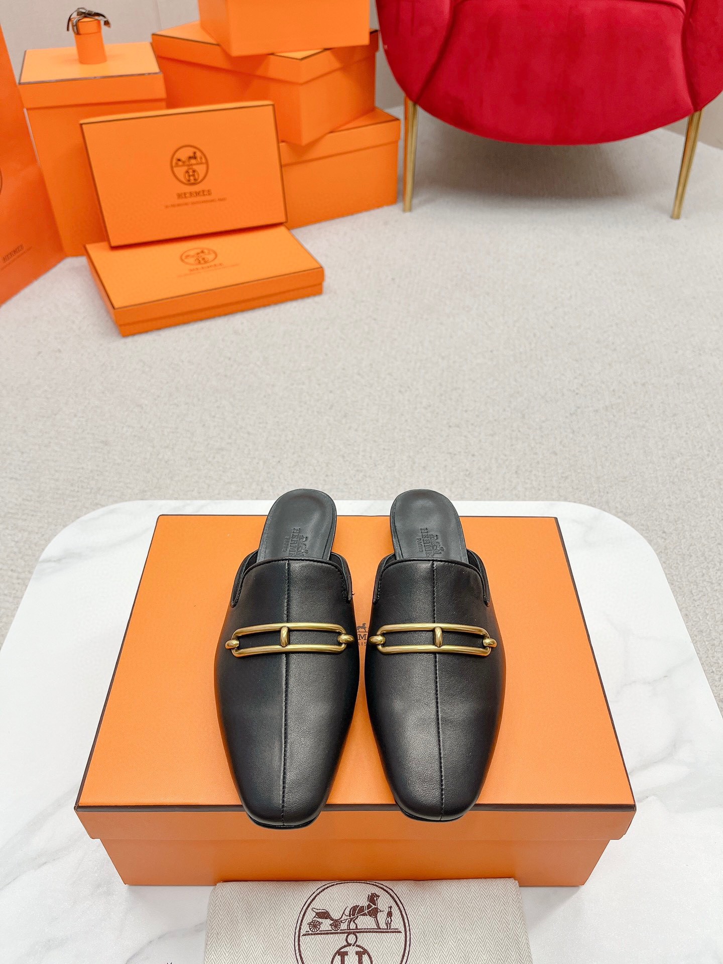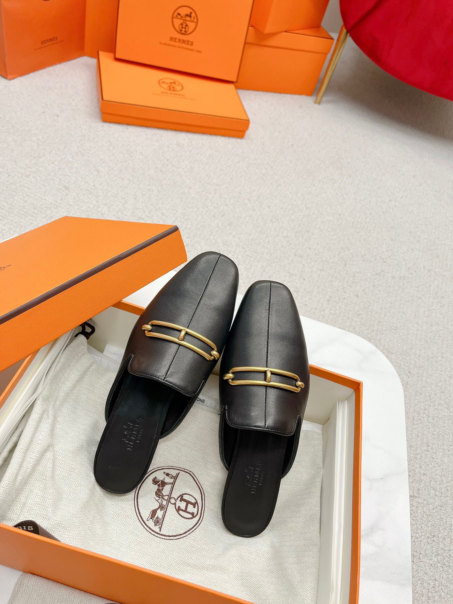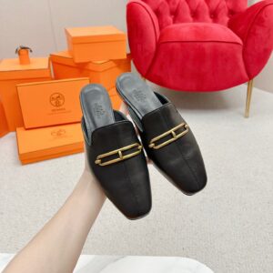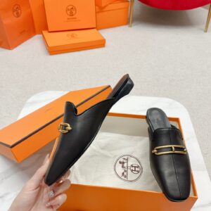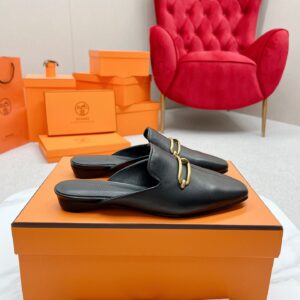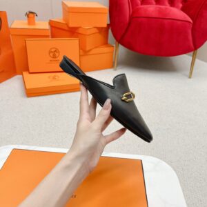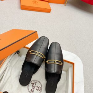 Hermes Esmee Mules in Black Calfskin