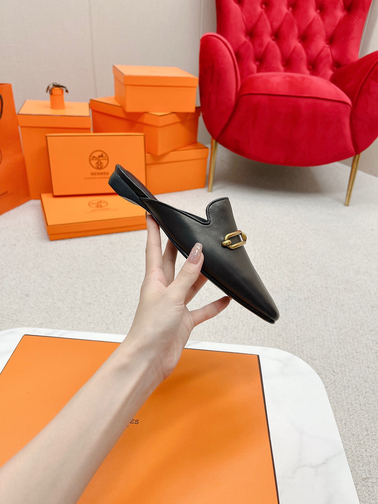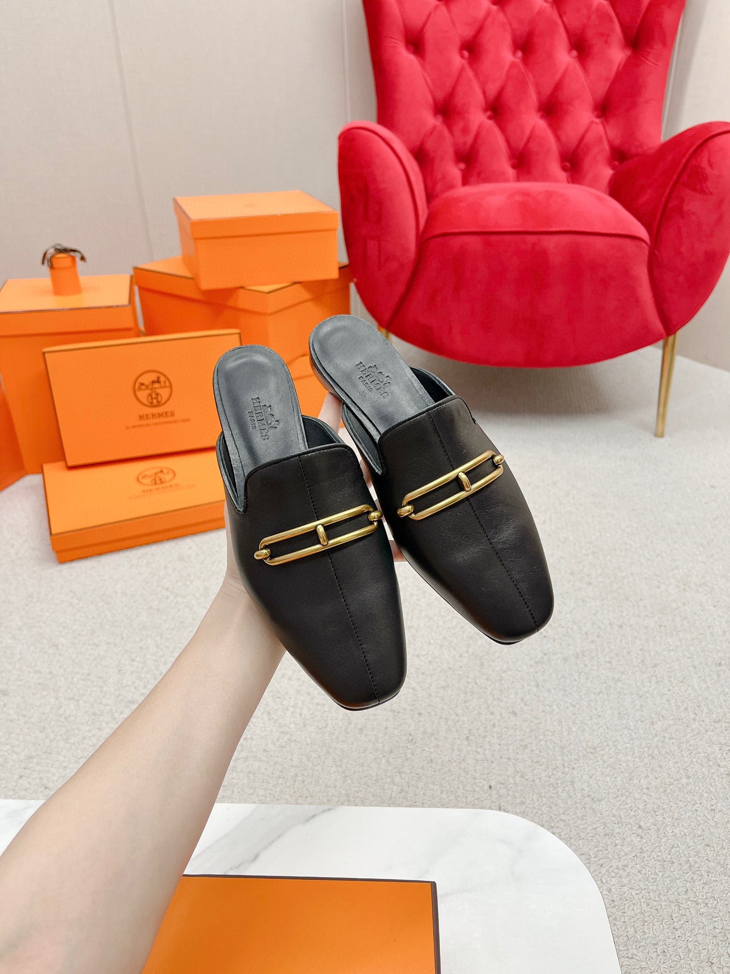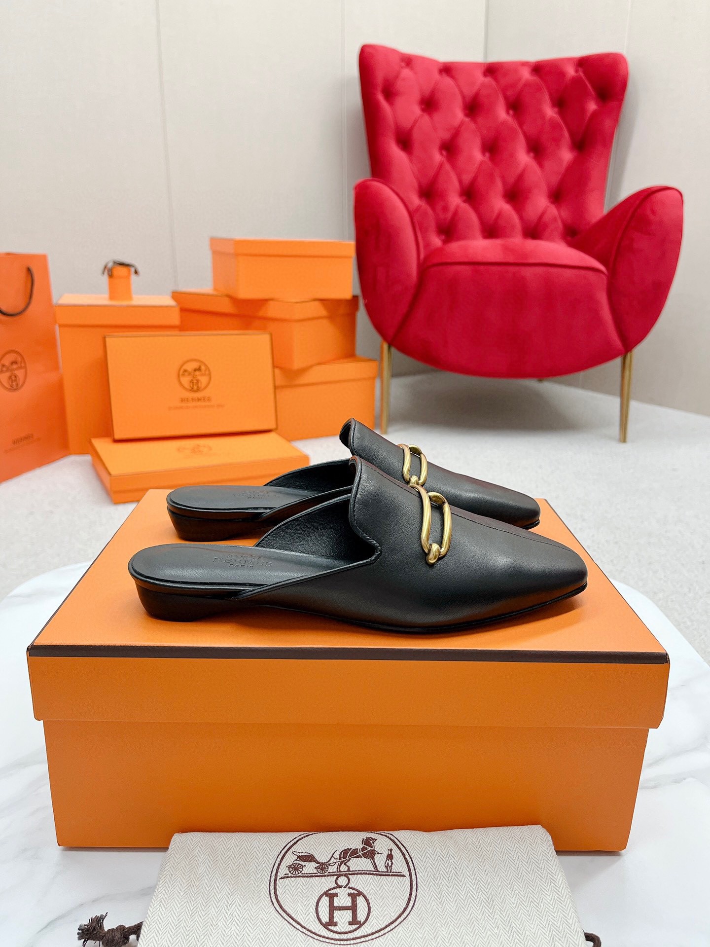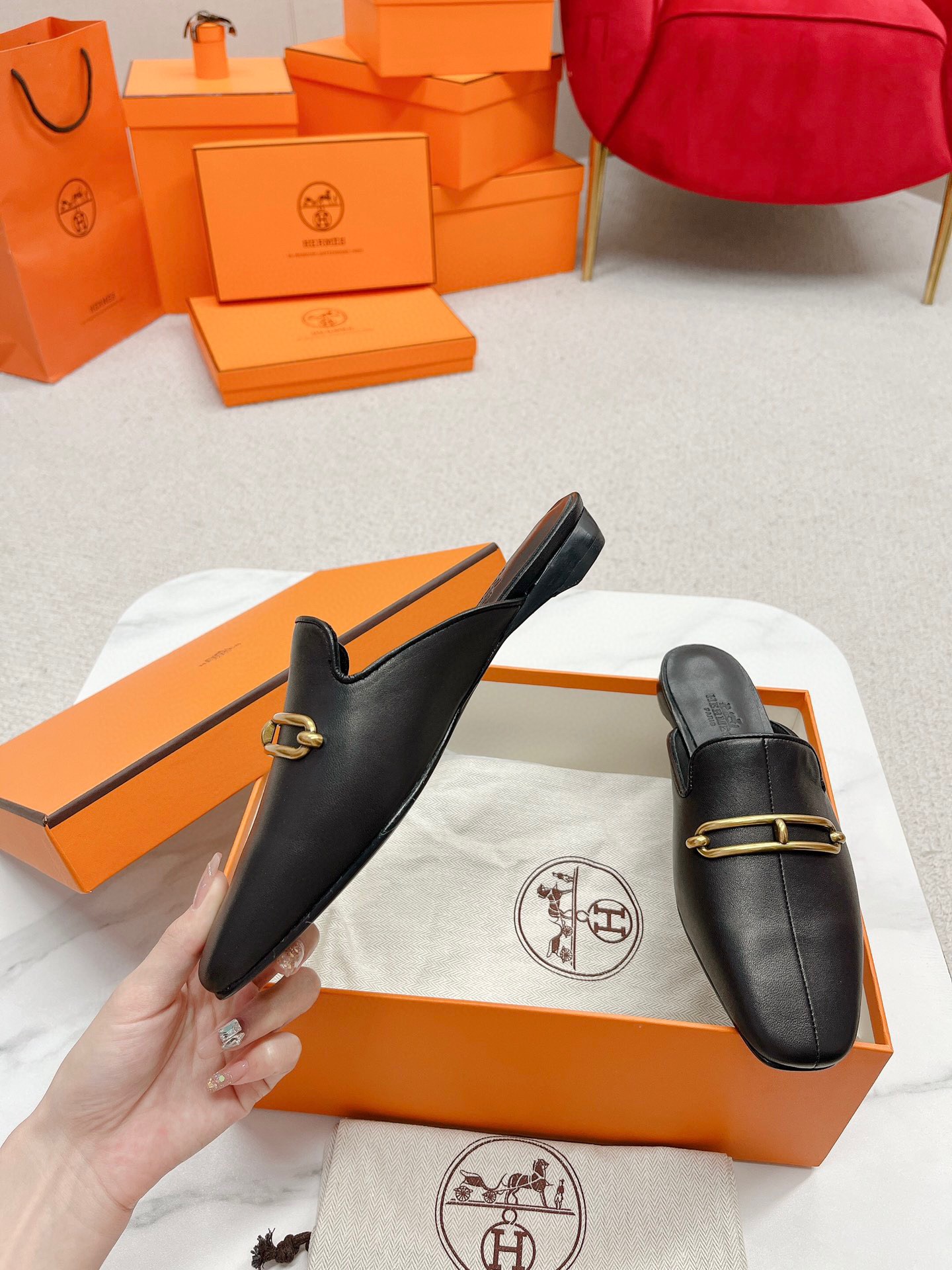 Hermes Esmee Mules in Black Calfskin