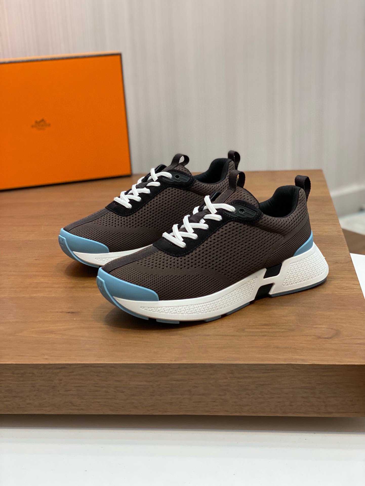 Perfecting these Hermes Heros sneakers, resulting in the lightest pair yet. They’re made from technical knit and suede and set on a ribbon sole with contrasting design and signature “H” detail, for a dynamic and modern look.
