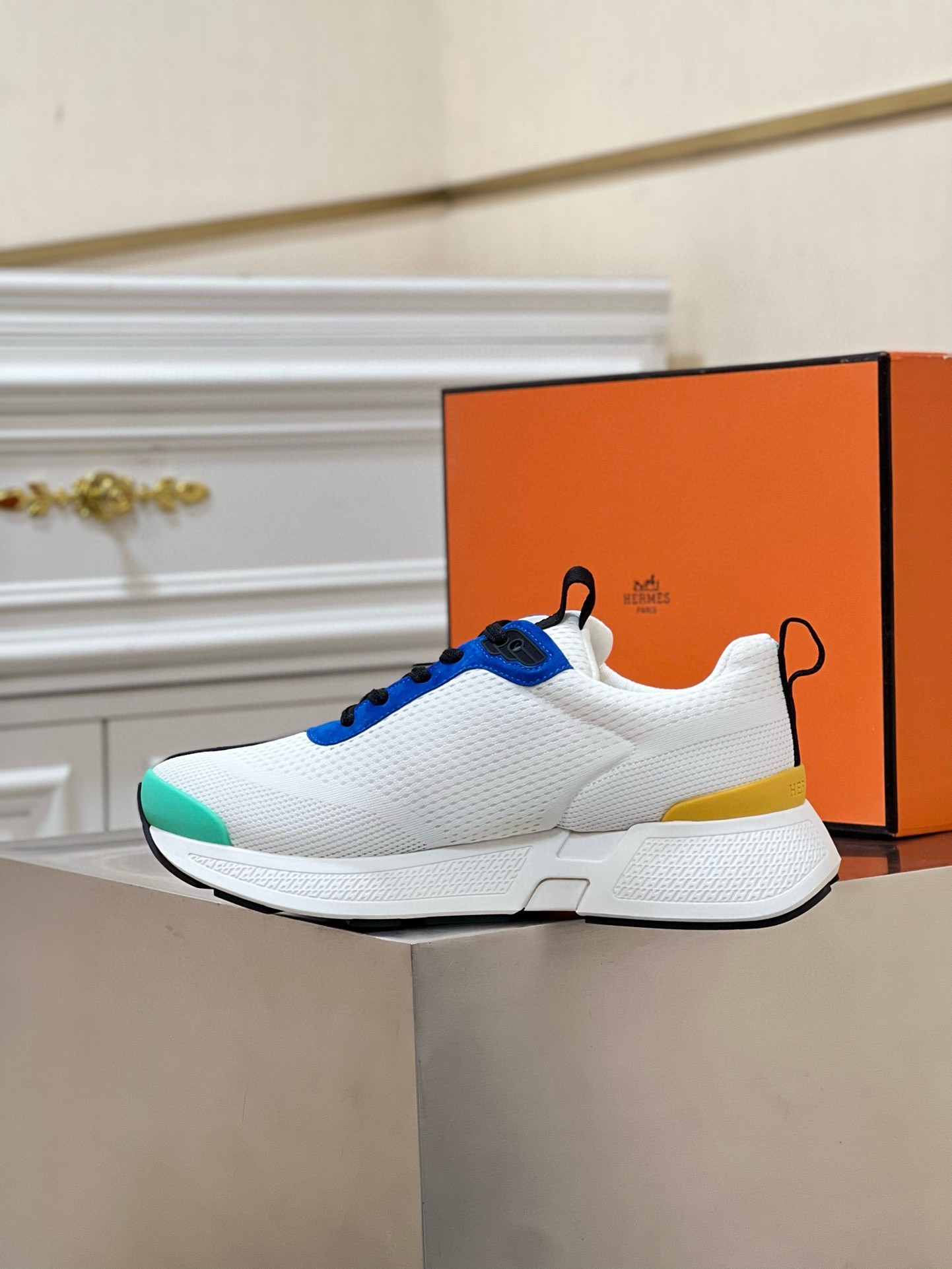 Perfecting these Hermes Heros sneakers, resulting in the lightest pair yet. They’re made from technical knit and suede and set on a ribbon sole with contrasting design and signature “H” detail, for a dynamic and modern look.