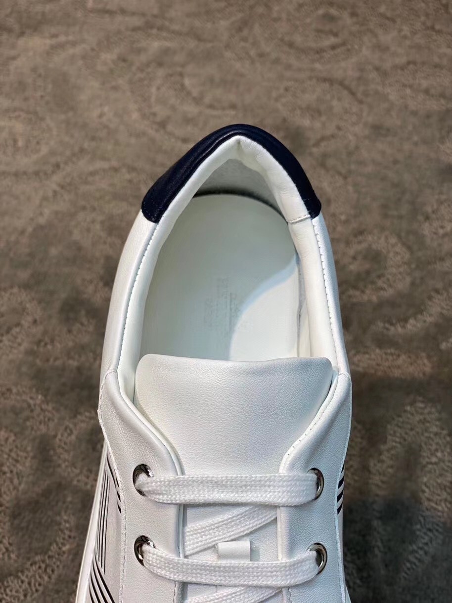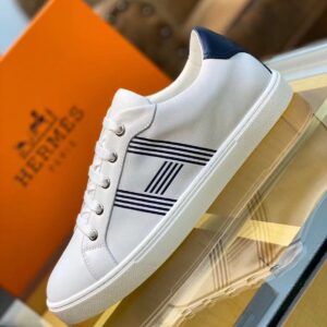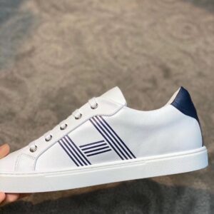 Hermes Men’s Avantage Sneakers In White/Blue Calfskin