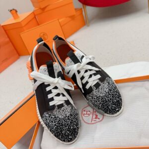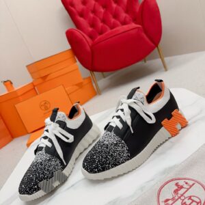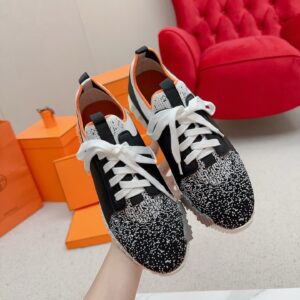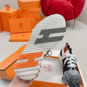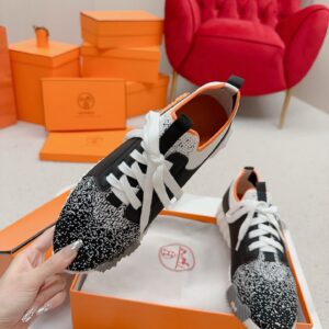The Hermes Depart Sneakers offer a modern, sporty look with a gradient knit calfskin upper and a lightweight rubber sole with a signature orange edge. Perfect for everyday wear and long-term comfort, this sneaker is designed to be lightweight yet supportive.