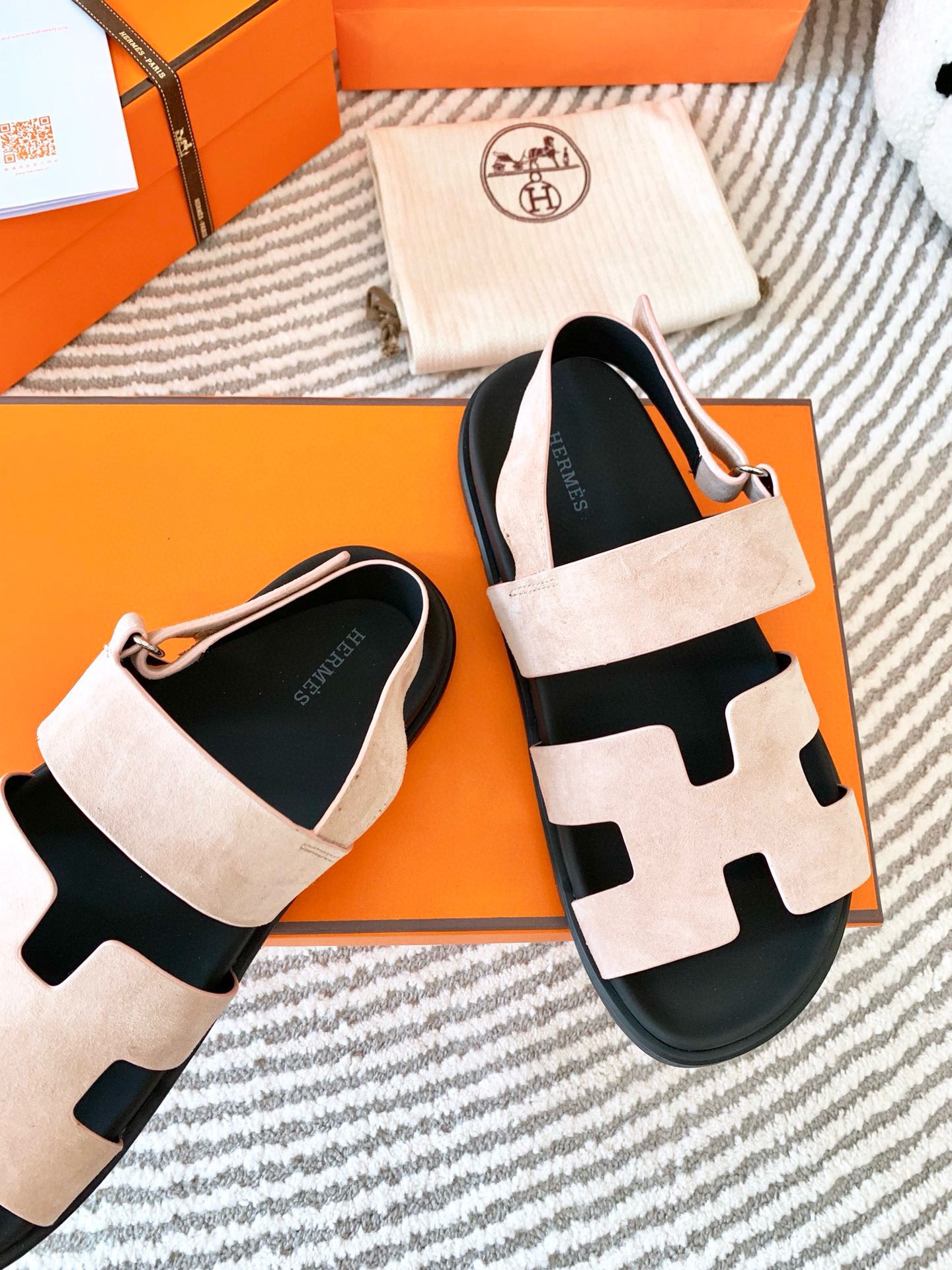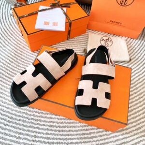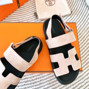 Hermes’s Genius sandals are the pair you’ll be reaching for all summer, every summer. They’ve been made from suede calfskin with Iconic “H” cut-out. This pair feature adjustable Velcro straps that allow you to find the perfect fit. The rubber soles are serrated, keeping you steady on slick surfaces.
