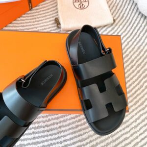 Hermes’s Genius sandals are the pair you’ll be reaching for all summer, every summer. They’ve been made from smooth calfskin with Iconic “H” cut-out. This pair feature adjustable Velcro straps that allow you to find the perfect fit. The rubber soles are serrated, keeping you steady on slick surfaces.