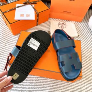 Hermes Men’s Genius Sandals In Blue Calfskin