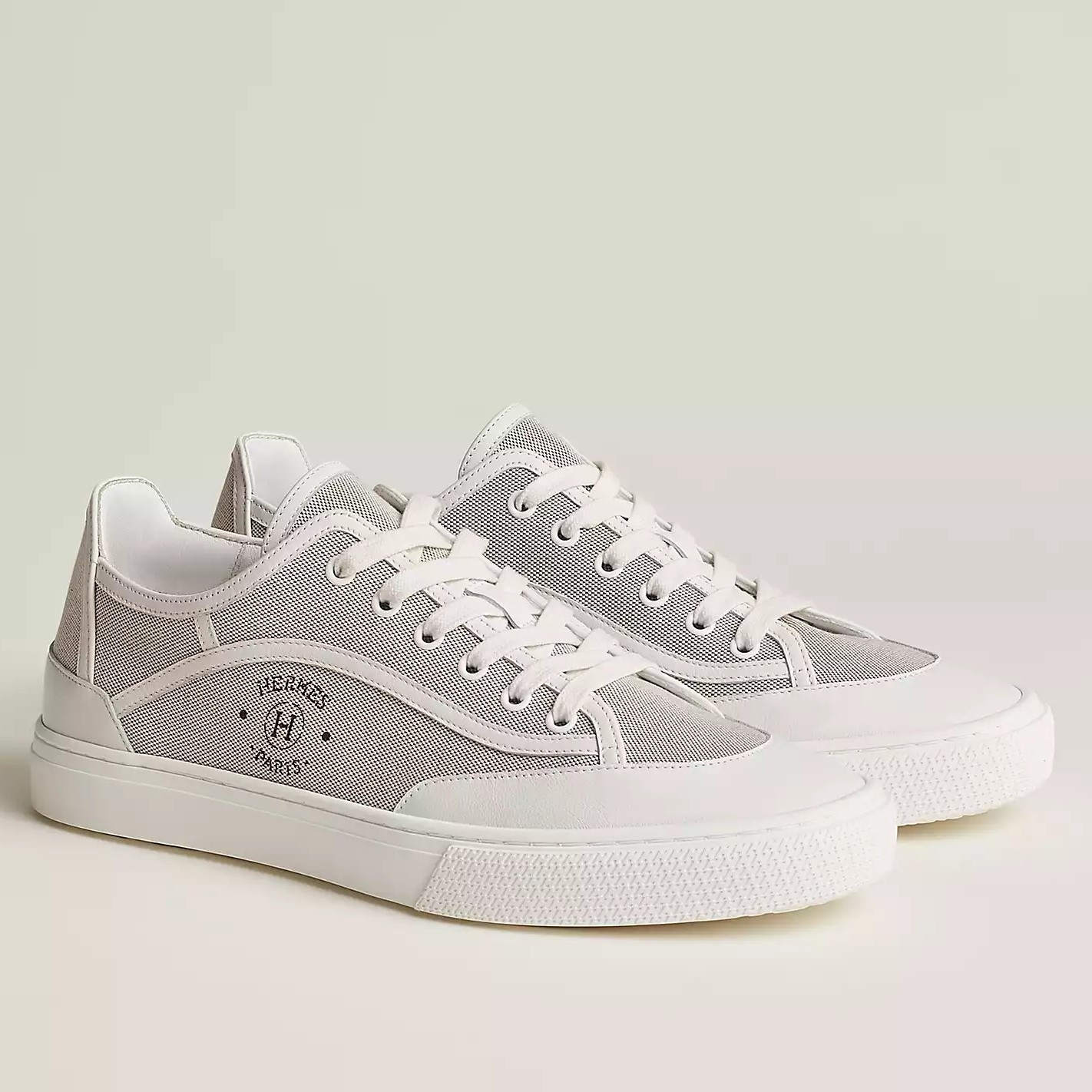 The Hermes Get Sneaker, a comfortable everyday classic sneaker. This pair of Men’s Get Sneakers comes in H canvas. It features a new “Hermès Paris” print on the outside of the shoe for the perfect modern, summer look. This is a perfect sneaker for everyday wear and is super comfy.