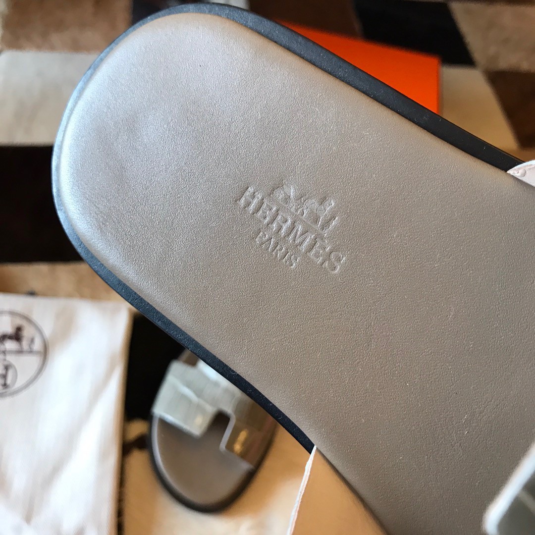 Hermes Men’s Izmir Sandals In Grey Shiny Niloticus Crocodile Leather