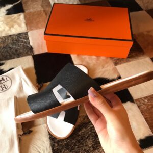 Hermes Izmir slides has become one of favourite leather sandals for men thanks to its simple, sleek and trendy design. The H cut leather strap is loved for its comfort and makes it easy to slip on with all your casual outfits. The design keeps your feet nice and cool during those hot summer days.
