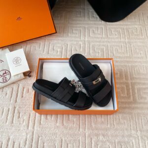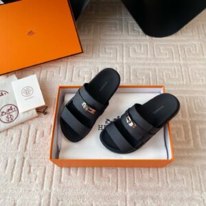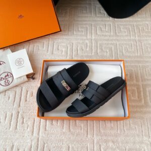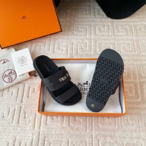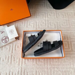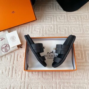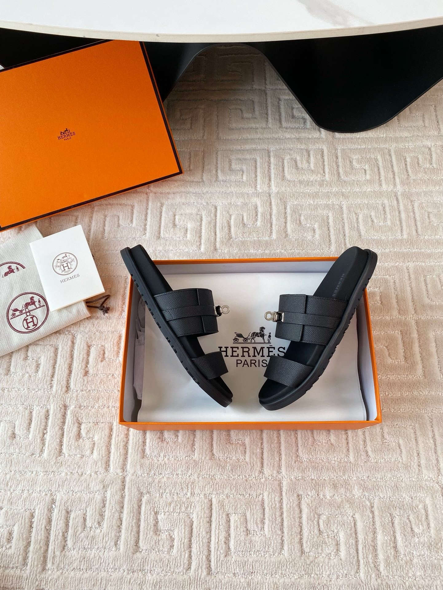 Hermes Men’s Jackson Sandal in Black Epsom Calfskin