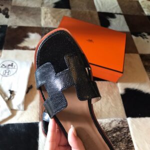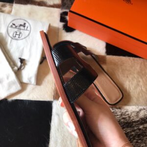 The most outstanding feature of the Oran sandal is the iconic H cutout that stands as a symbol of the Hermes brand that is known throughout the world and in fashion circles. The uppers of the Oran sandal are made of exotic Lizard leather, which is extremely valuable and rare and is processed as little as possible to maintain its natural texture. This is an essential accessory for any woman’s wardrobe featuring the iconic Hermes style for casual wear.