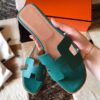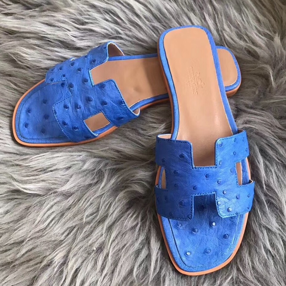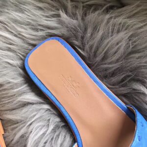 Hermes Oran Slide Sandals In Blue Hydra Ostrich Leather