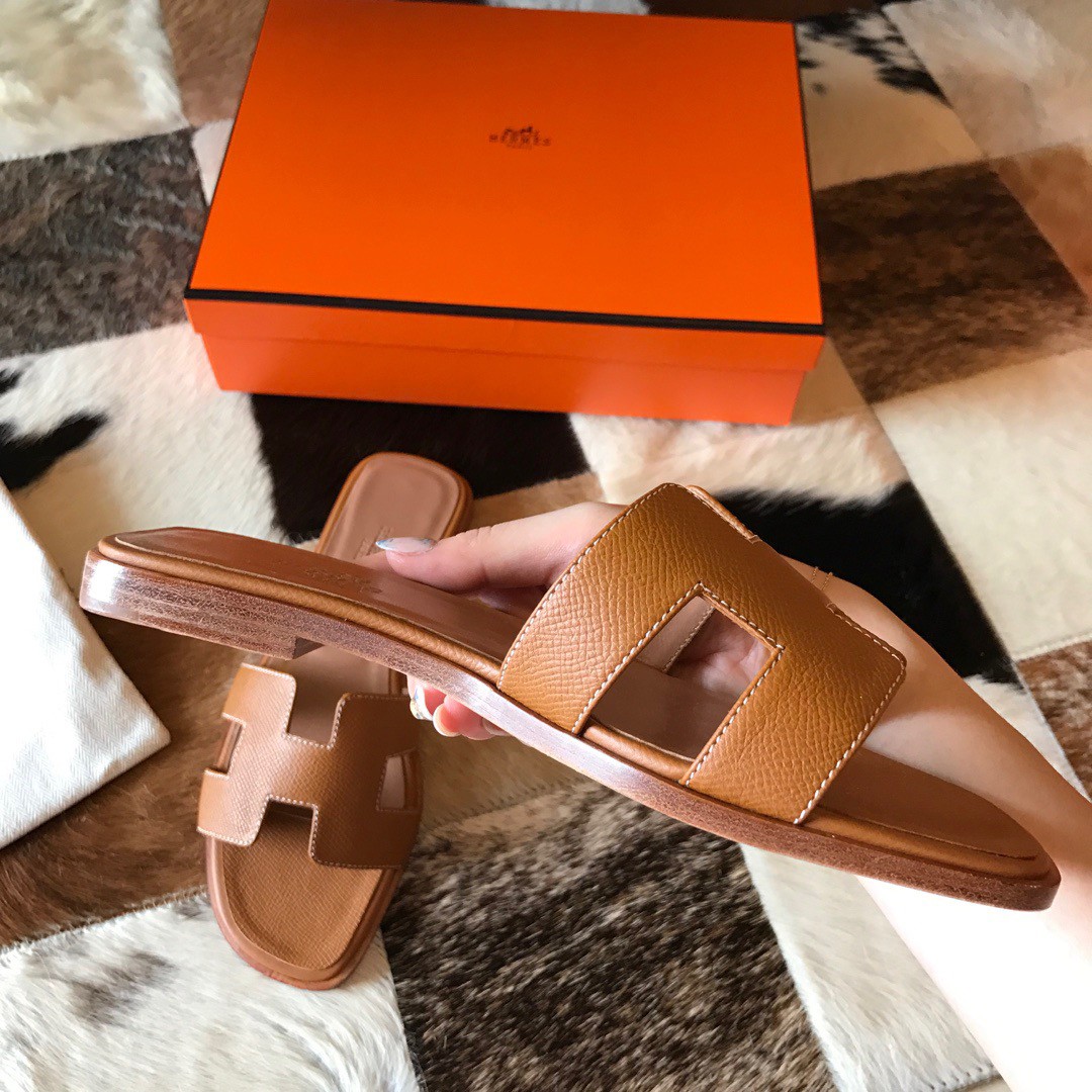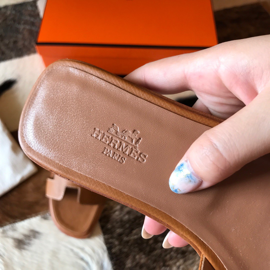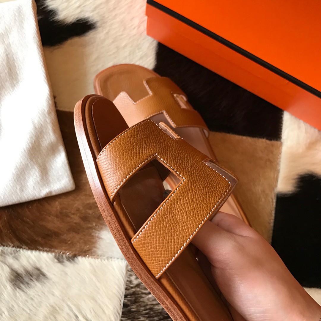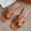 Hermes Oran Slide Sandals In Brown Epsom Calfskin