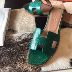 The most outstanding feature of the Oran sandal is the iconic H cutout that stands as a symbol of the Hermes brand that is known throughout the world and in fashion circles. The uppers of the Oran sandal are made of exotic Lizard leather, which is extremely valuable and rare and is processed as little as possible to maintain its natural texture. This is an essential accessory for any woman’s wardrobe featuring the iconic Hermes style for casual wear.