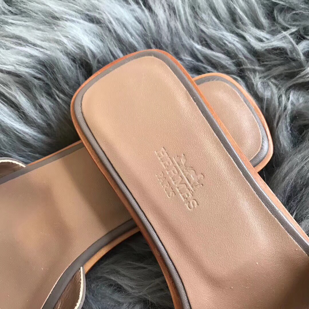 Hermes Oran Slide Sandals In Grey Swift Calfskin