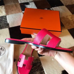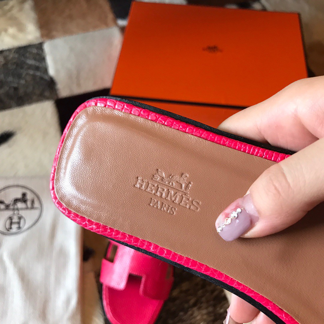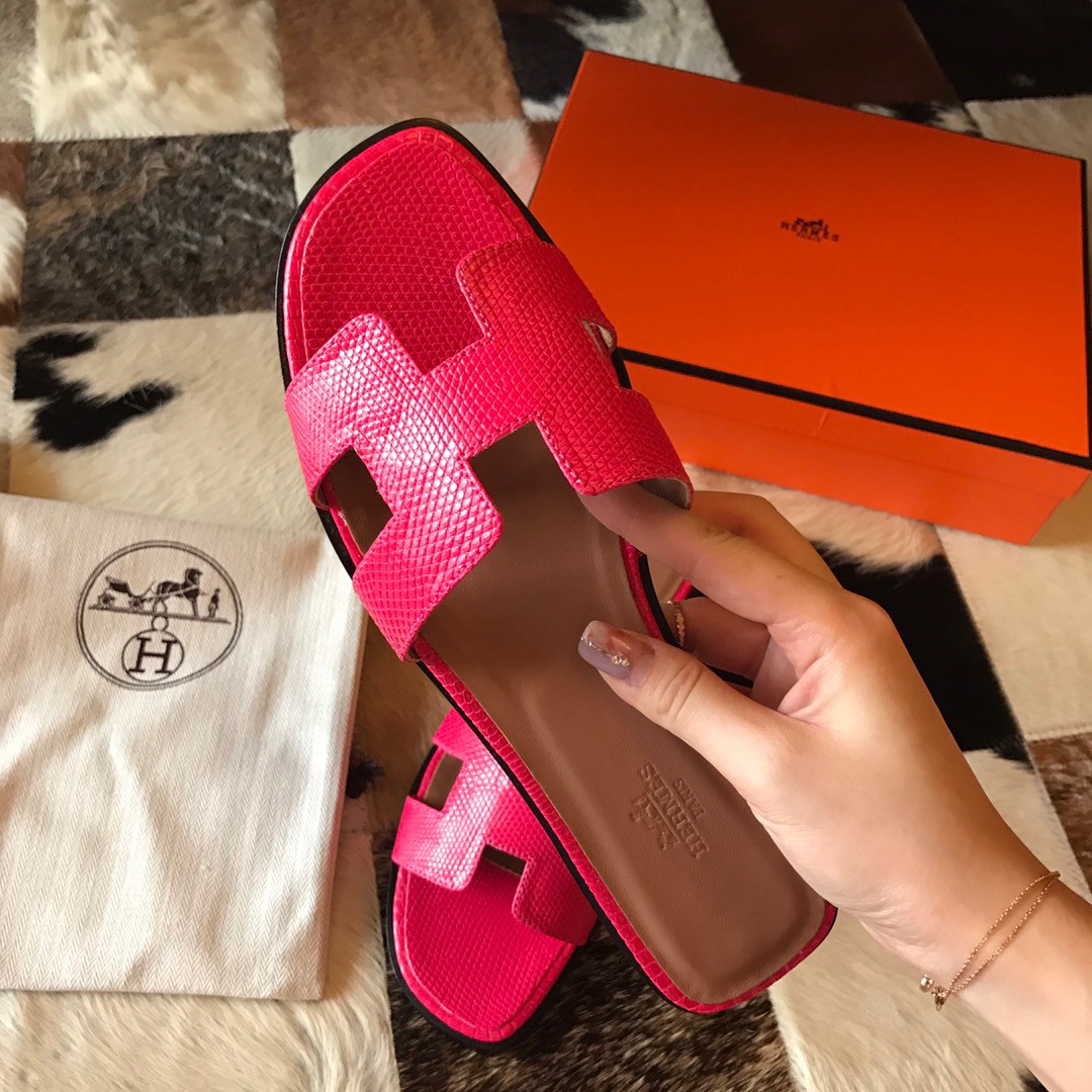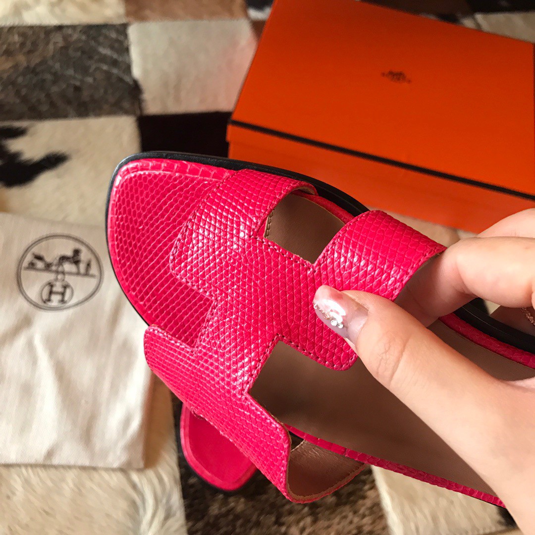 Hermes Oran Slide Sandals In Red Lizard Leather