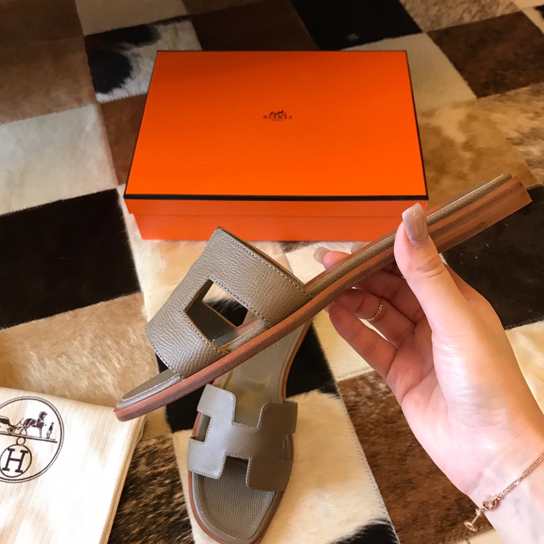 Hermes Oran Slide Sandals In Taupe Epsom Calfskin
