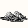 Hermes’s View Sandals are crafted from calf leather with cut-out evoking the iconic Kelly buckle. Its clean lines are complemented by two studs in palladium plated hardware. This timeless style features a monobloc construction combining several layers of leather for a thick, hard-wearing outsole and a comfortable padded insole.