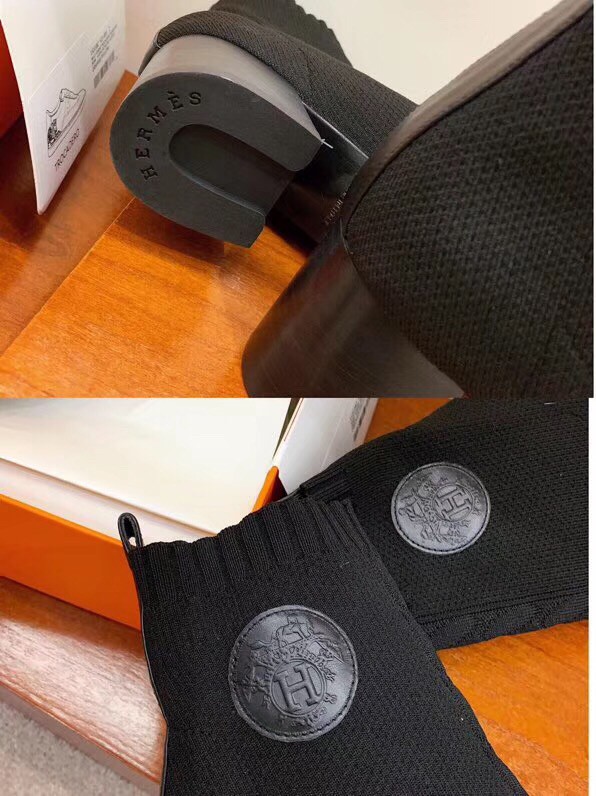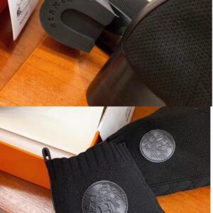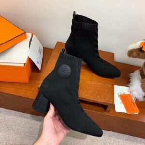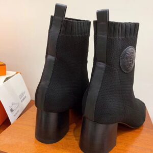 This fashion-forward interpretation of the Volver 60 ankle boot features a sock-like upper in knit with “Clic! C’est noue” motif, Ex-Libris motif in calfskin and horseshoe shaped heel.