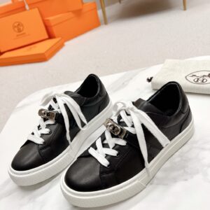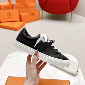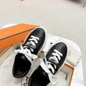 These stylish and easy to wear Hermes lace-up sneakers are a great addition to any wardrobe! Luxurious leather lined uppers with a stylish strap and Kelly buckle. Leather lined upper and rubber soles for a comfortable fit and a touch of class. This is a unique style any fashionista would not want to miss!