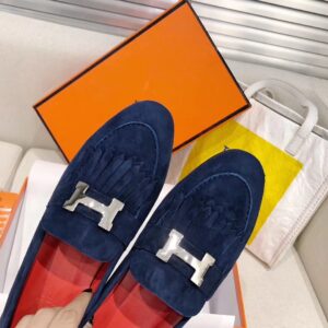 Hermes Women’s Royal Loafers In Blue Suede Leather
