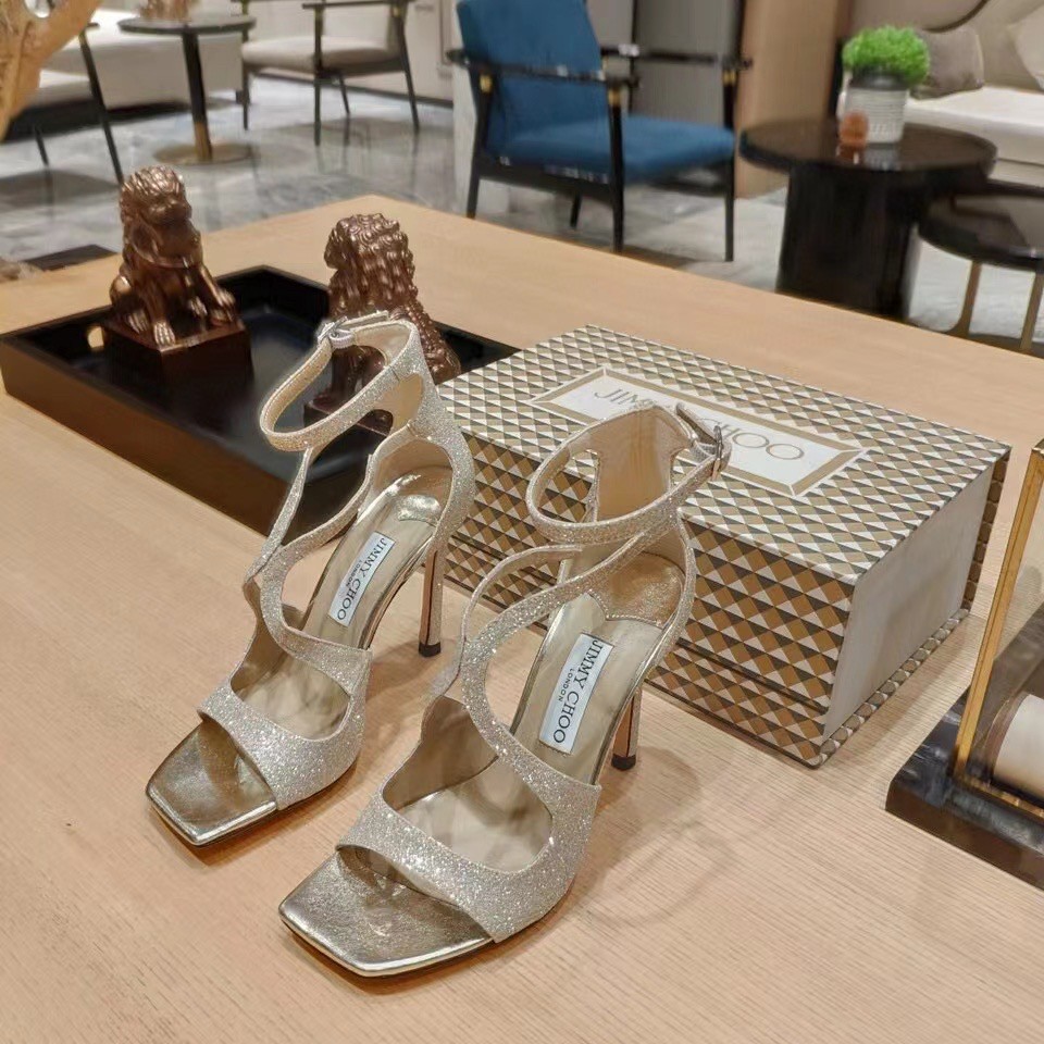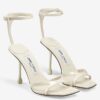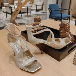 Sharp and distinct, our AZIA sandals are presented in platinum ice dusty glitter and showcase signature delicate curved straps that flatteringly snake up your feet. This Italian-crafted pair features a slim heel and a modern square toe.