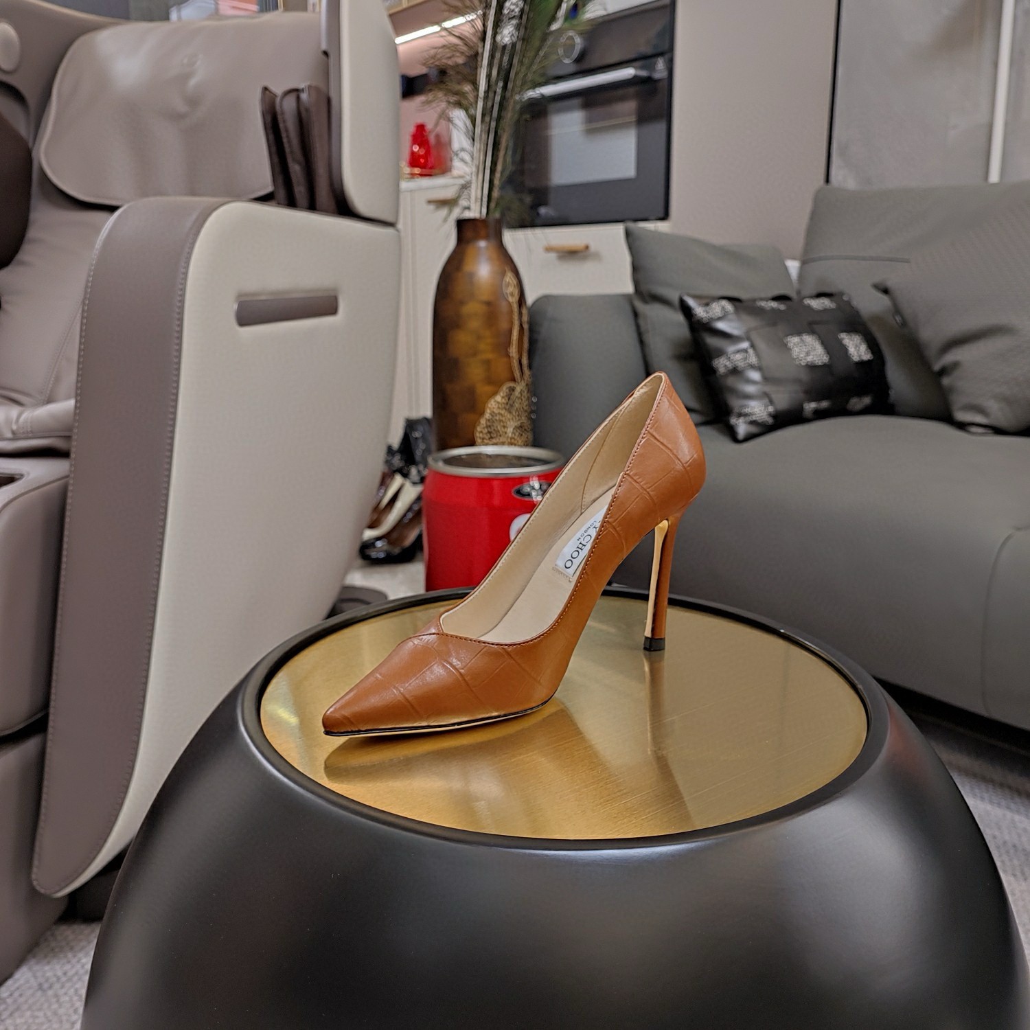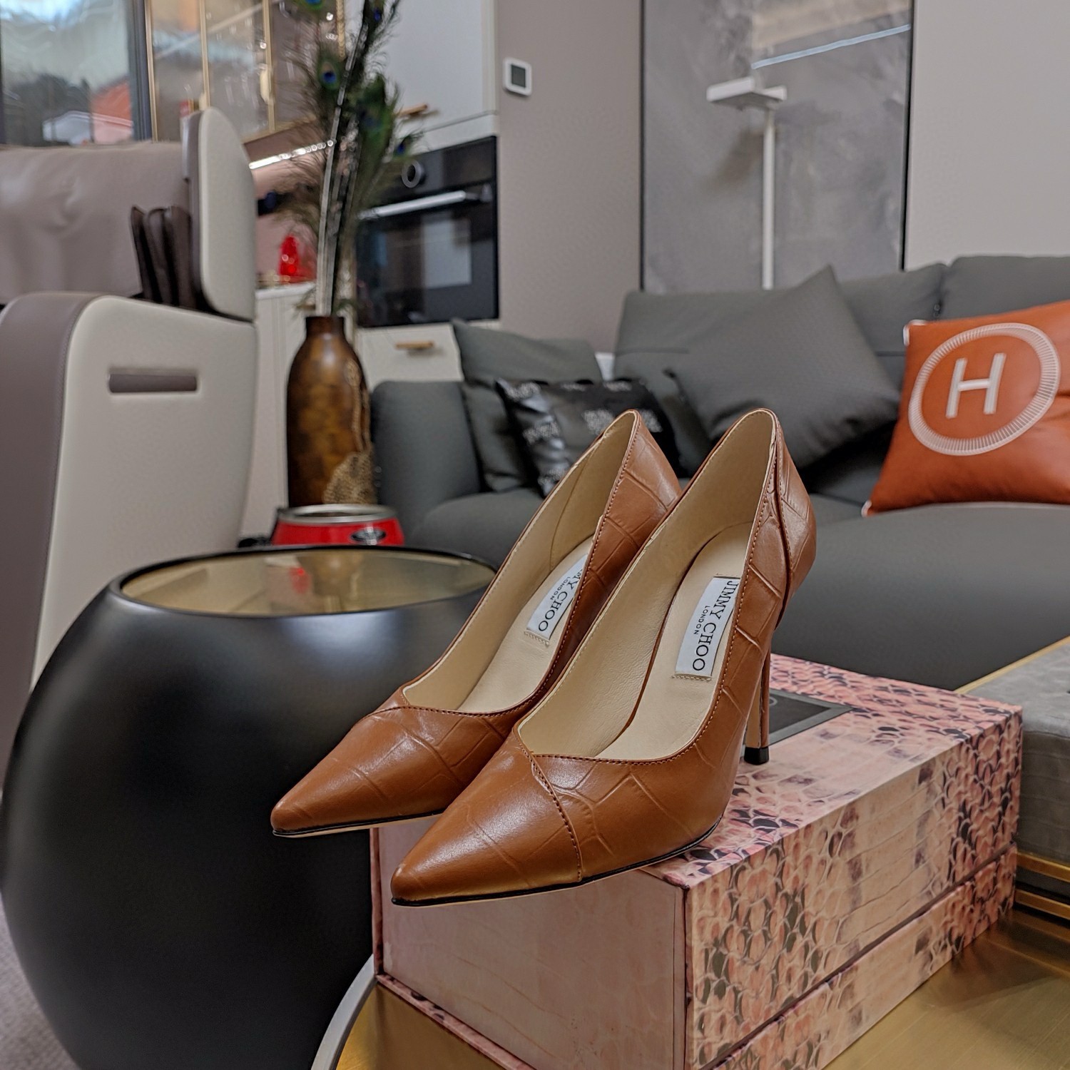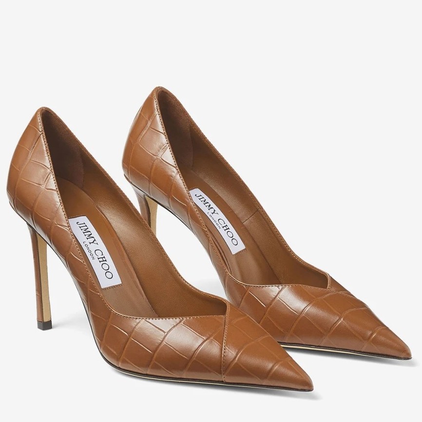 Jimmy Choo Cass 95mm Pumps in Brown Croc-Embossed Leather