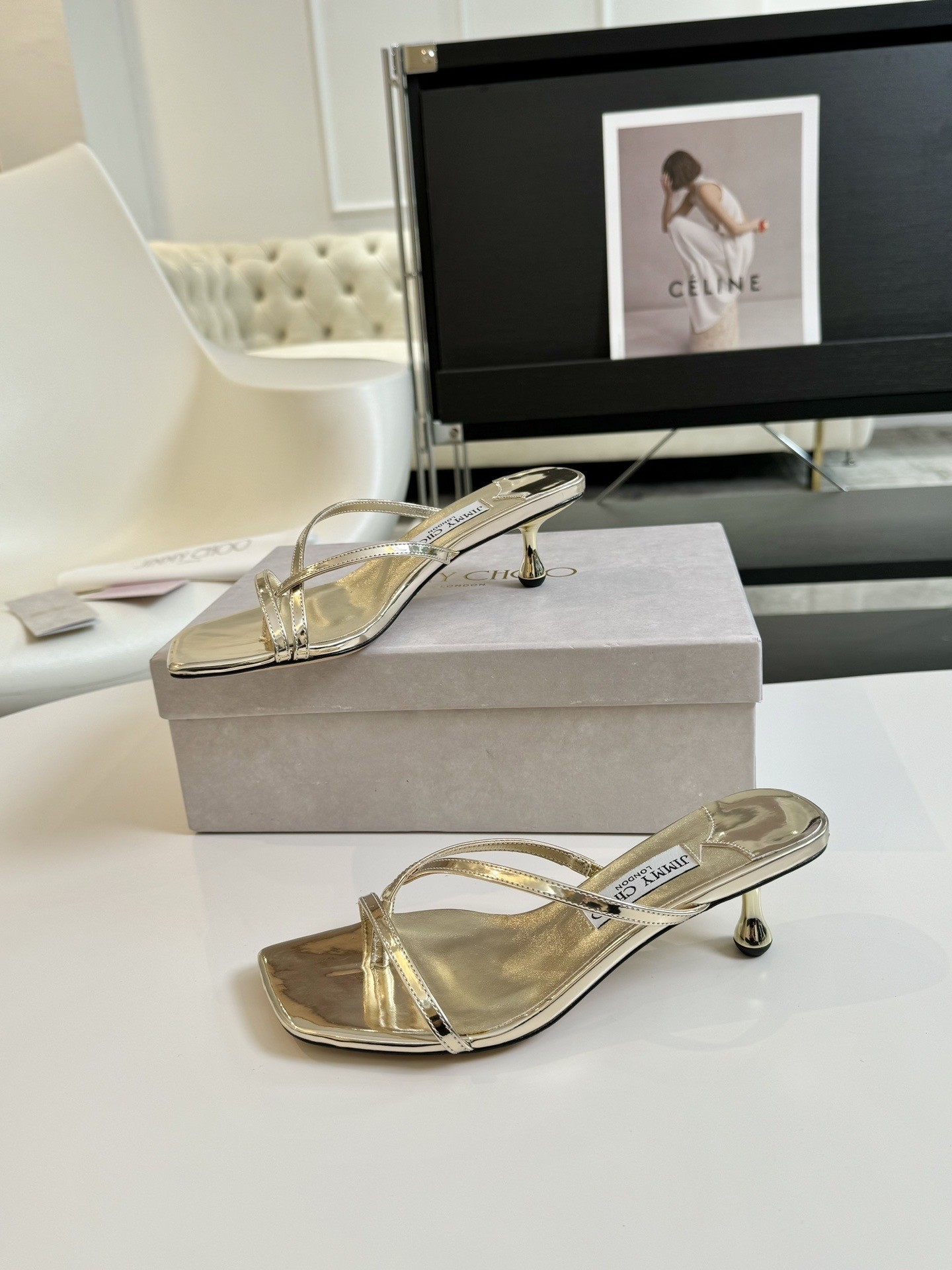Sleek, chic and minimal, Jimmy Choo’s Etana mules are sure to elevate any summer outfit with elegance. Thin strips of Metallic leather secure your foot to the sturdy sole, supported by a sculptural teardrop heel that those in the know will instantly recognise as Jimmy Choo.