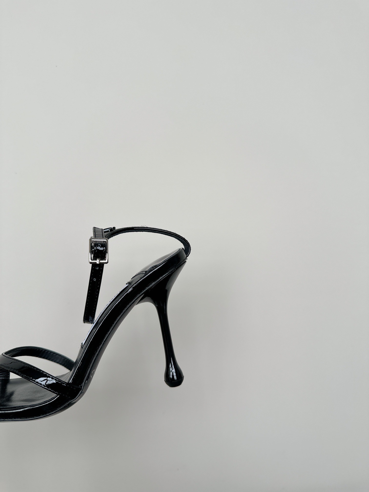 It’s hard to picture a more sultry pair of heeled sandals than Jimmy Choo’s Ixia. Unlike the label’s Azia heeled sandals – a strappy design with a closed back – the Ixia style features a thin strap around the ankles. The skin-baring, square-toe design sits atop a glossy stiletto heel that forms a teardrop shape for added impact.