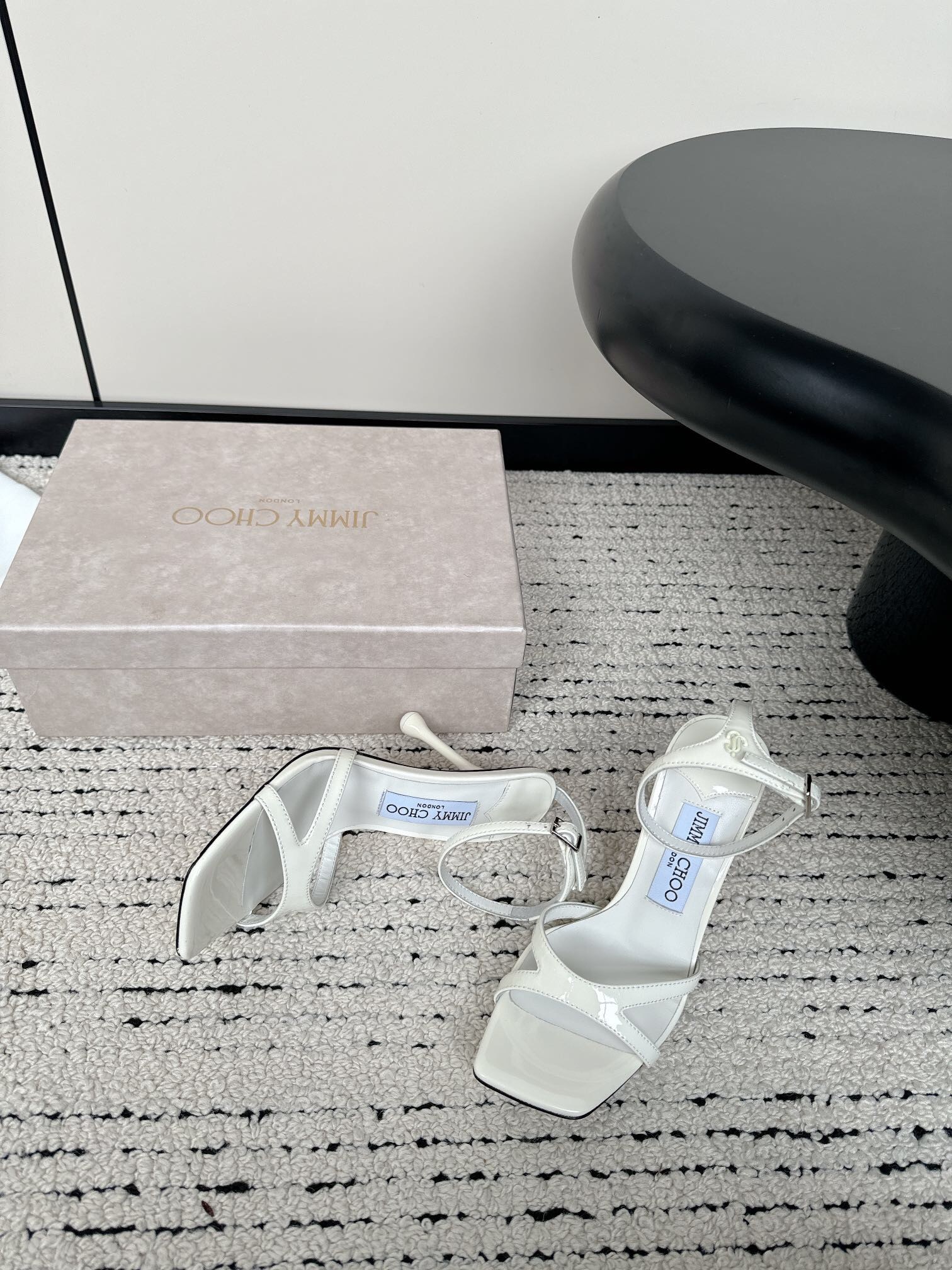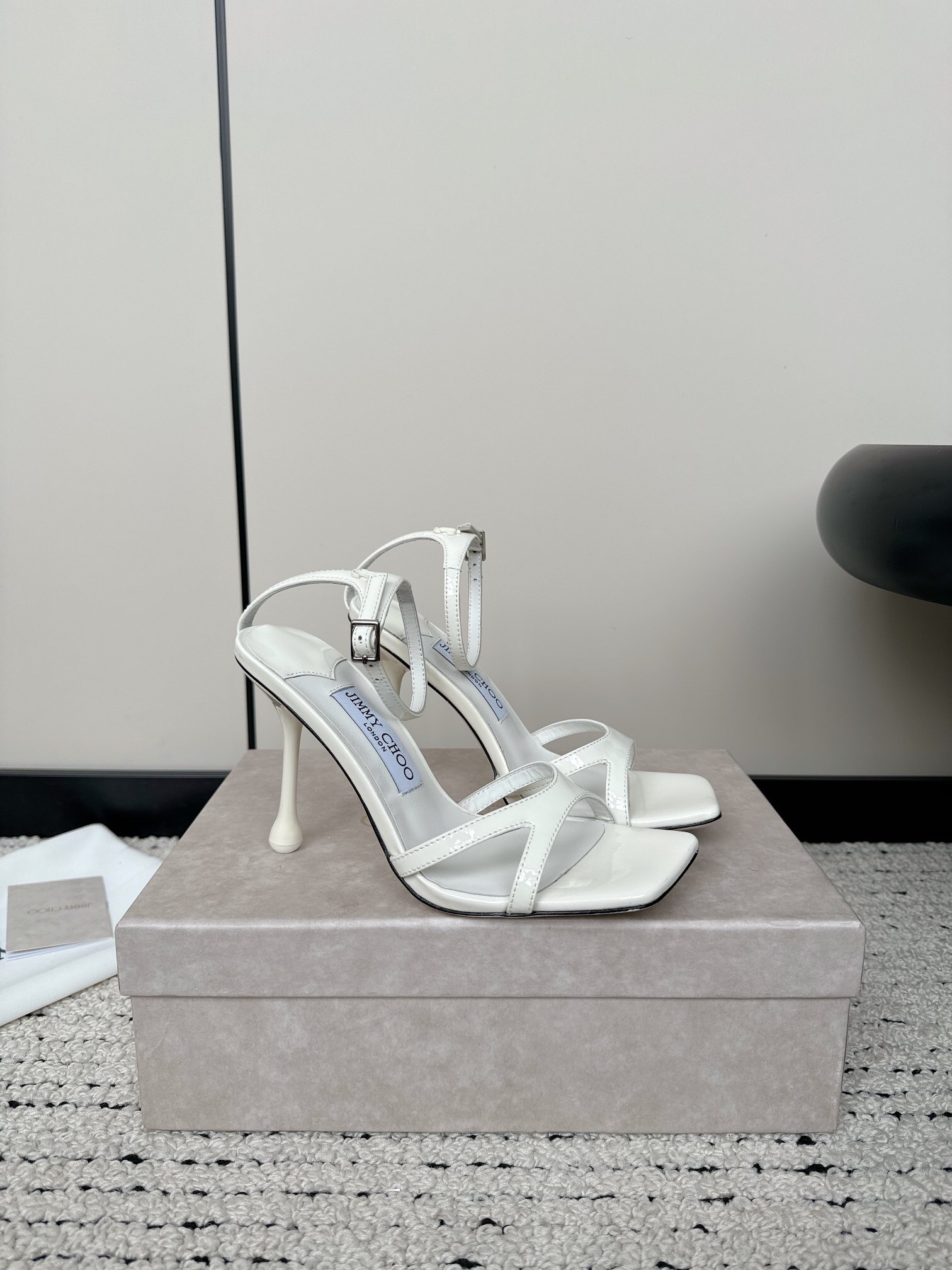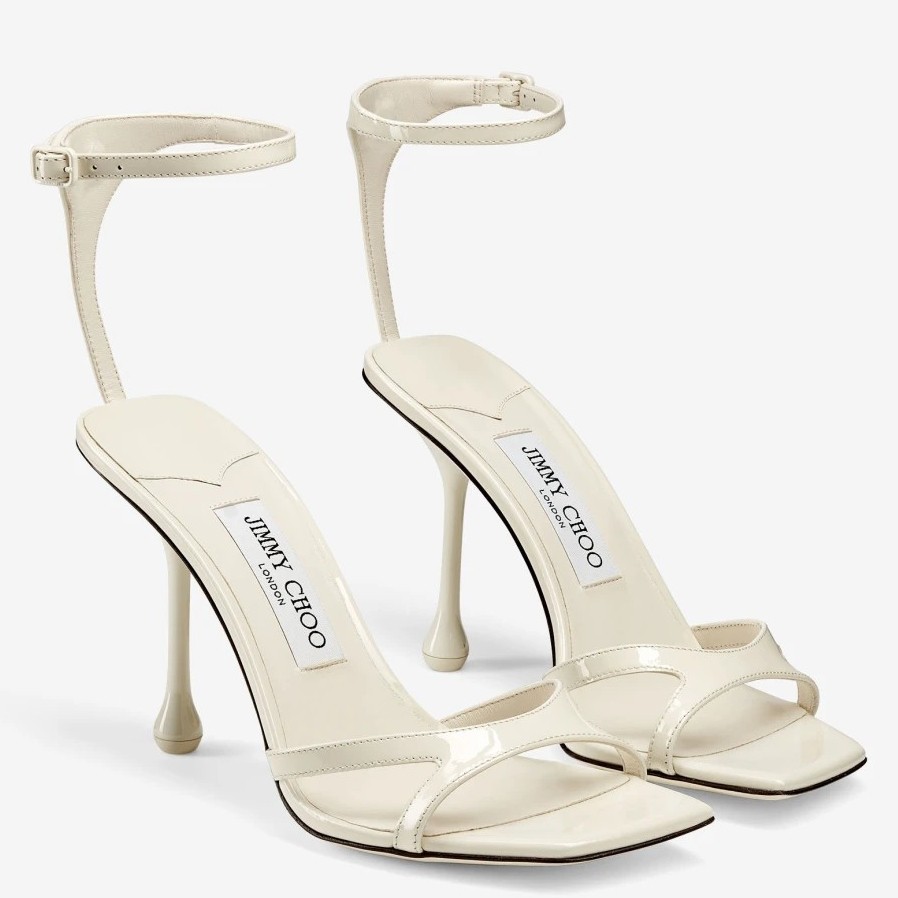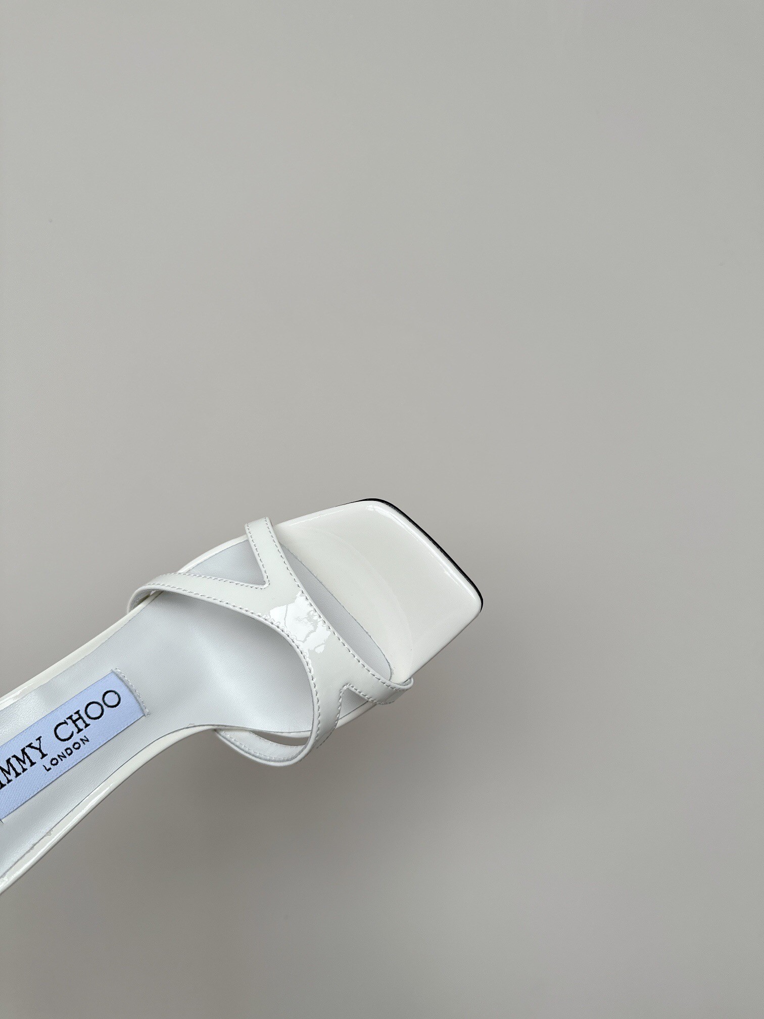 Jimmy Choo Ixia Sandals 95mm in White Patent Calfskin