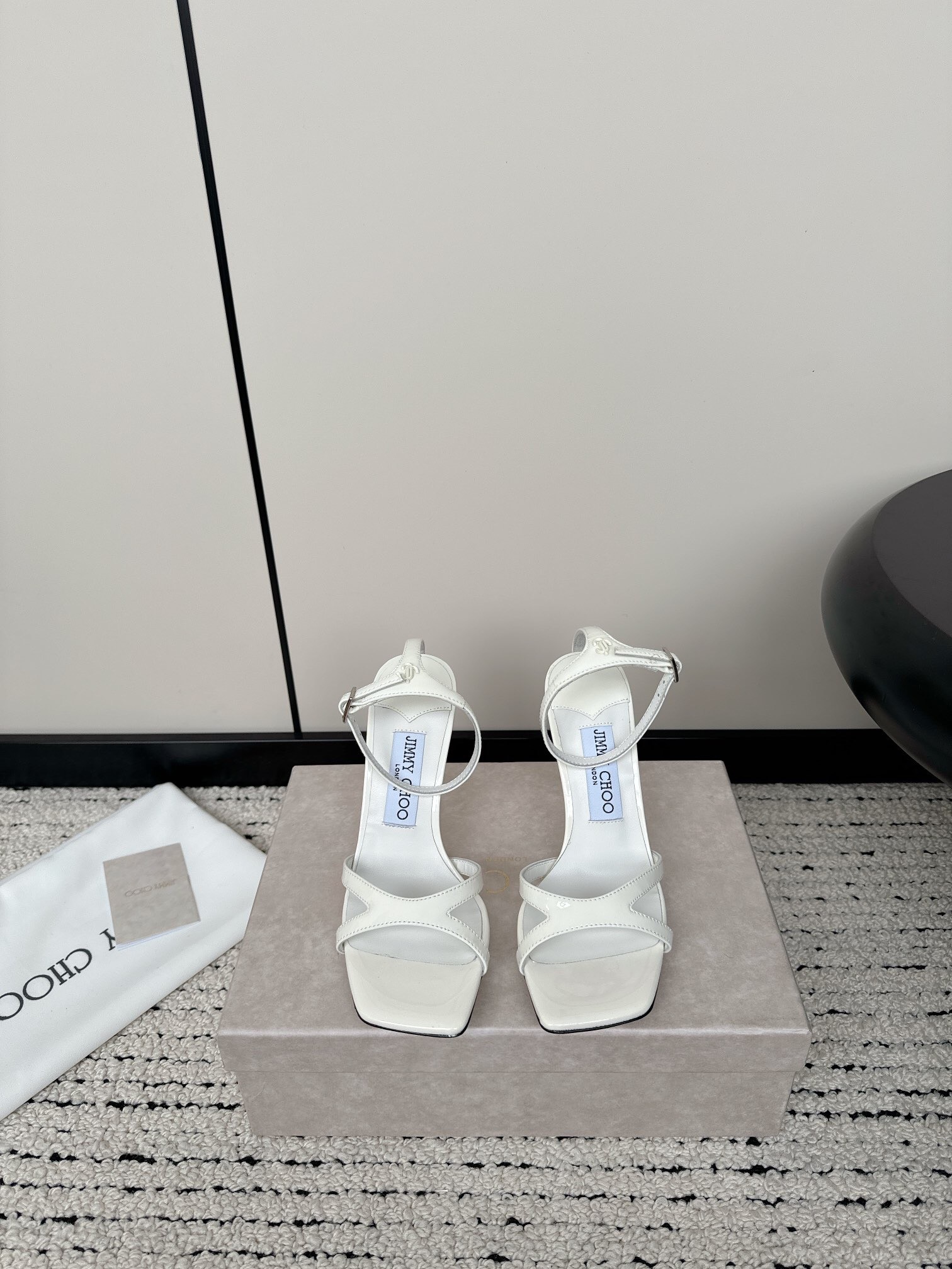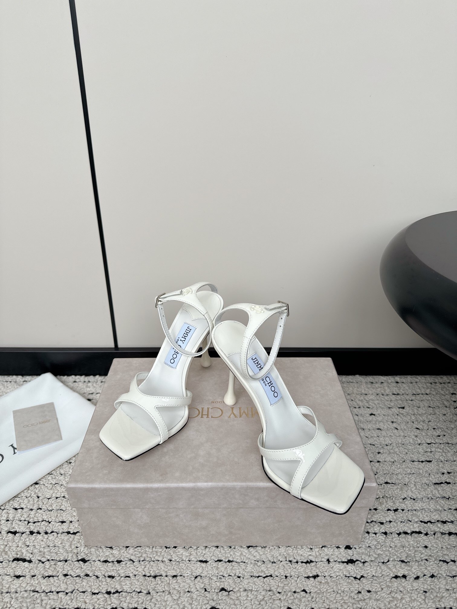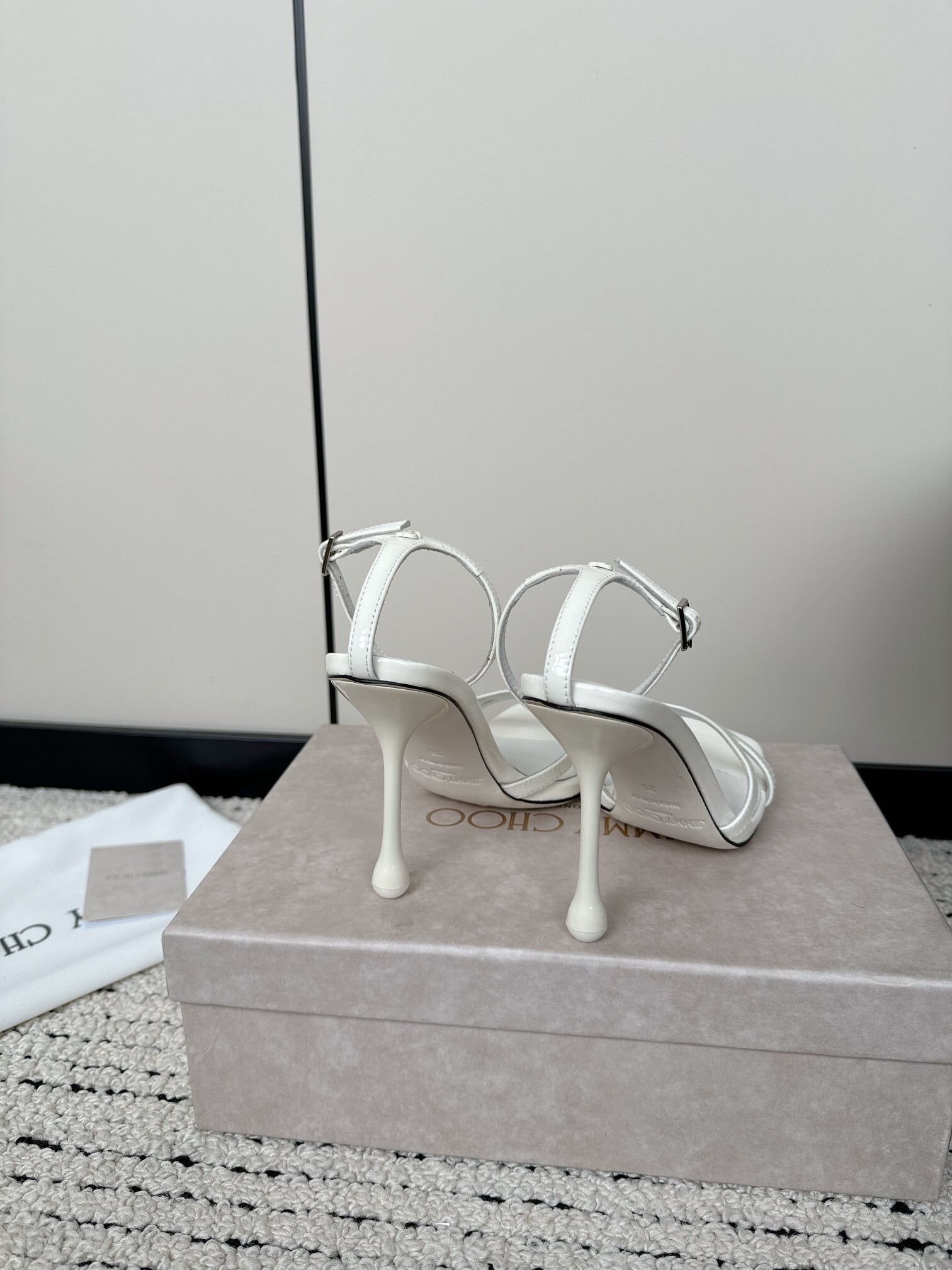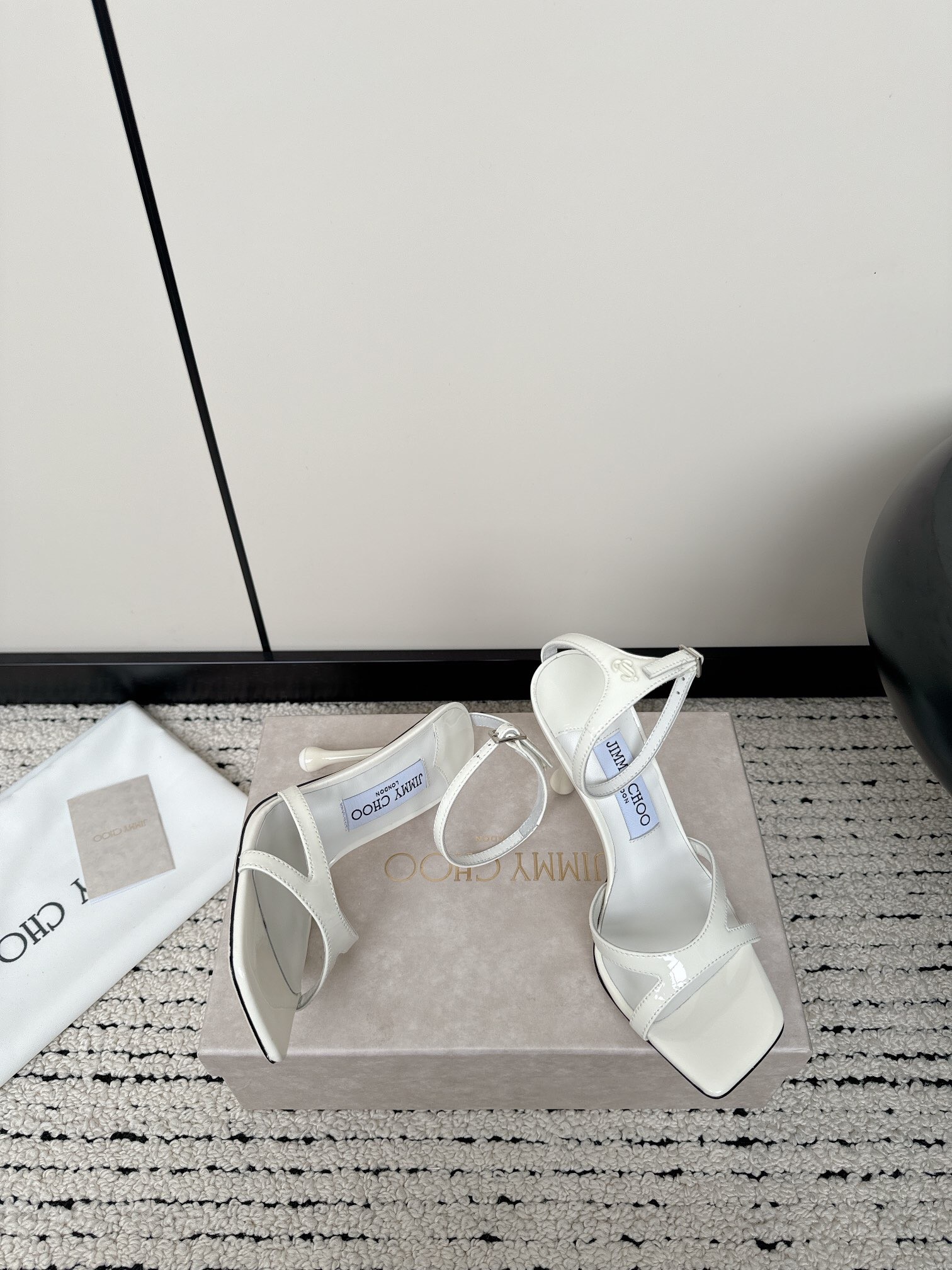 Jimmy Choo Ixia Sandals 95mm in White Patent Calfskin