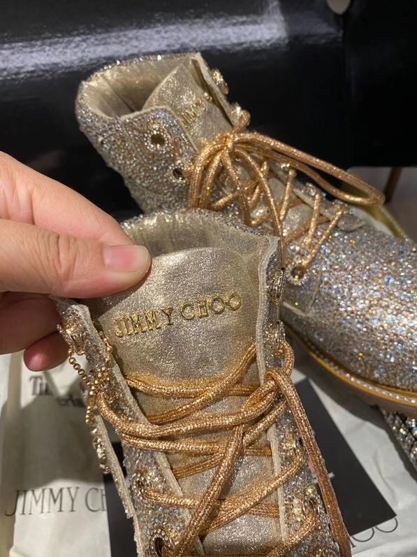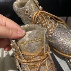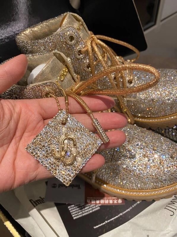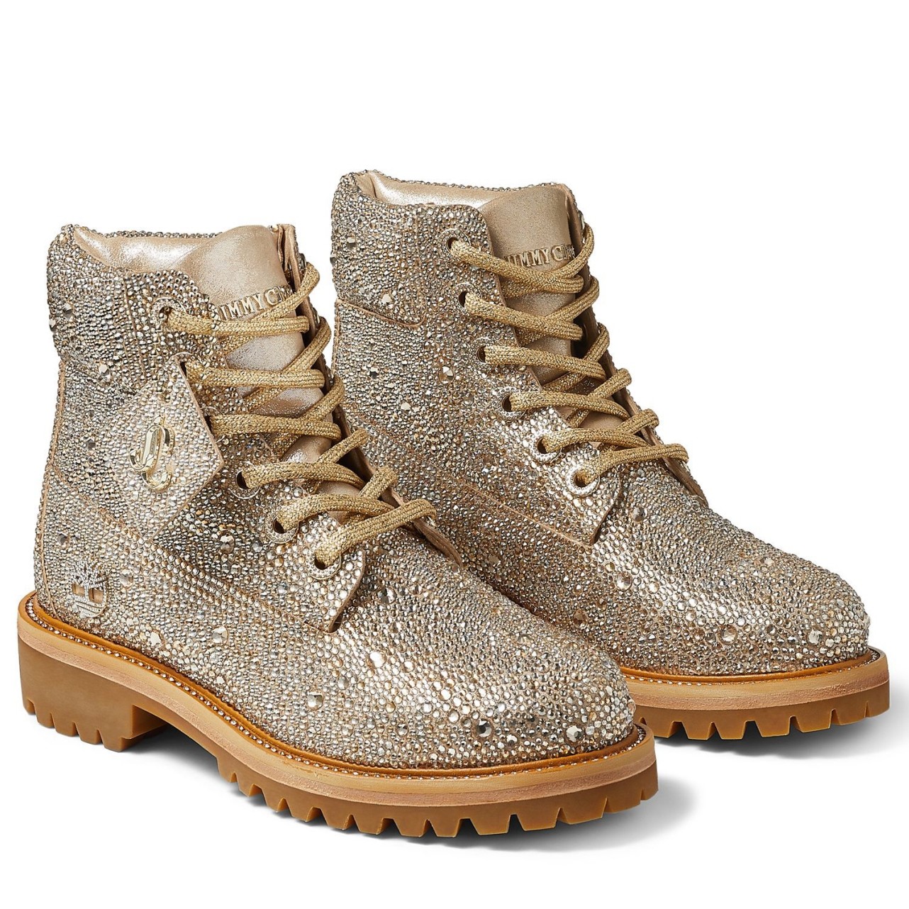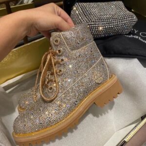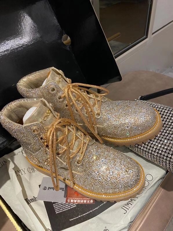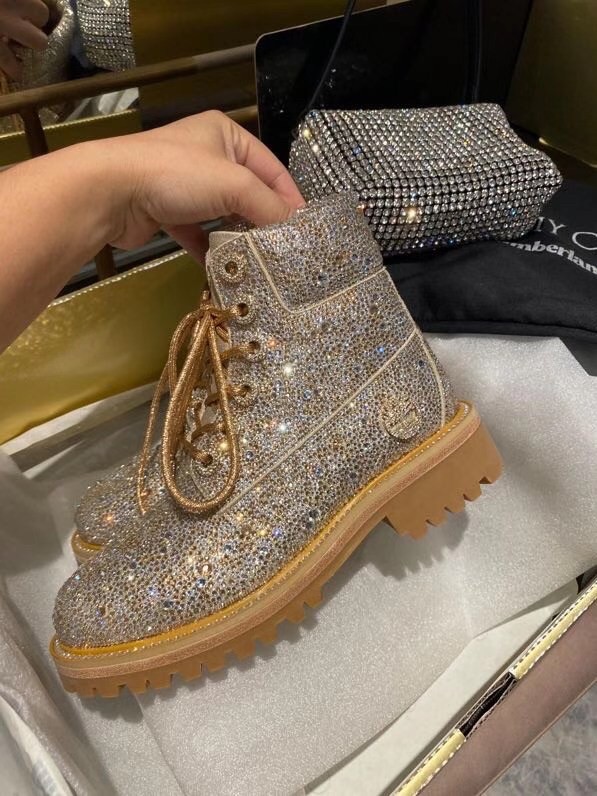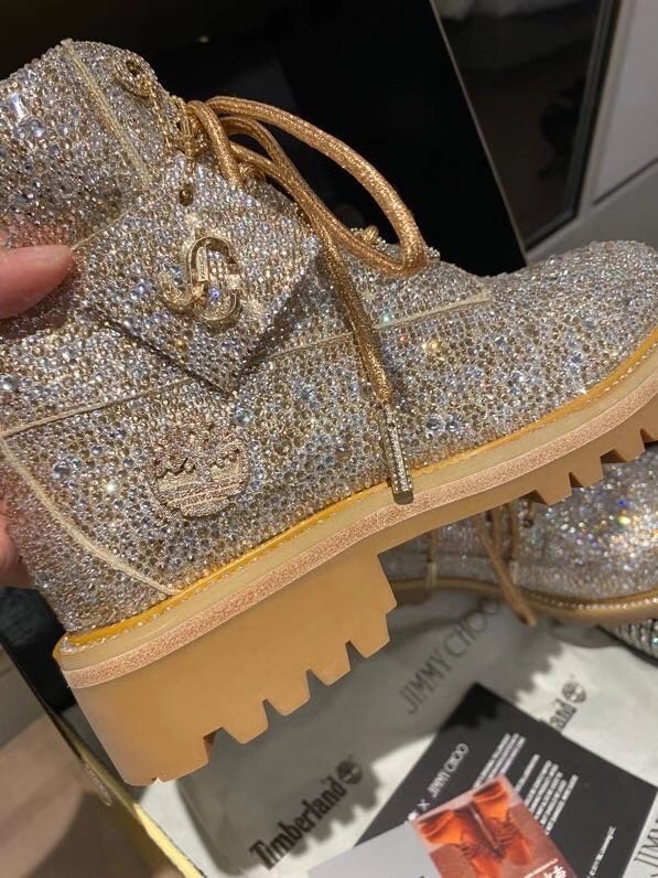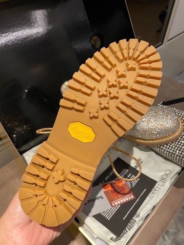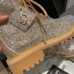 Jimmy Choo’s JC X TIMBERLAND/F boot is a glamorous update of Timberland’s heritage 6-Inch style. Part of a limited-edition collection that fuses Timberland’s outdoor utility with our signature off-duty glamour, this leather-lined, sustainably-made pair arrives in golden mix shimmer suede and is grounded with durable Vibram® outsoles. It is finished with all-over Swarovski hotfix crystals.