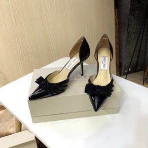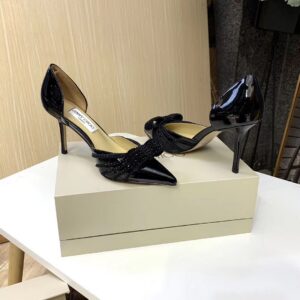 Looks can be deceiving. Crafted from glossy patent calfskin, these Kaitence 85mm crystal-embellished pumps from Jimmy Choo might look harmless but will make you feel seriously fierce. Walk that walk. Featuring a slip-on style, a pointed tip, a high stiletto heel, crystal embellishments and a bow on the front.