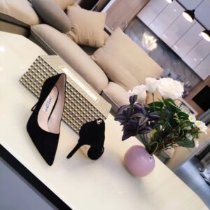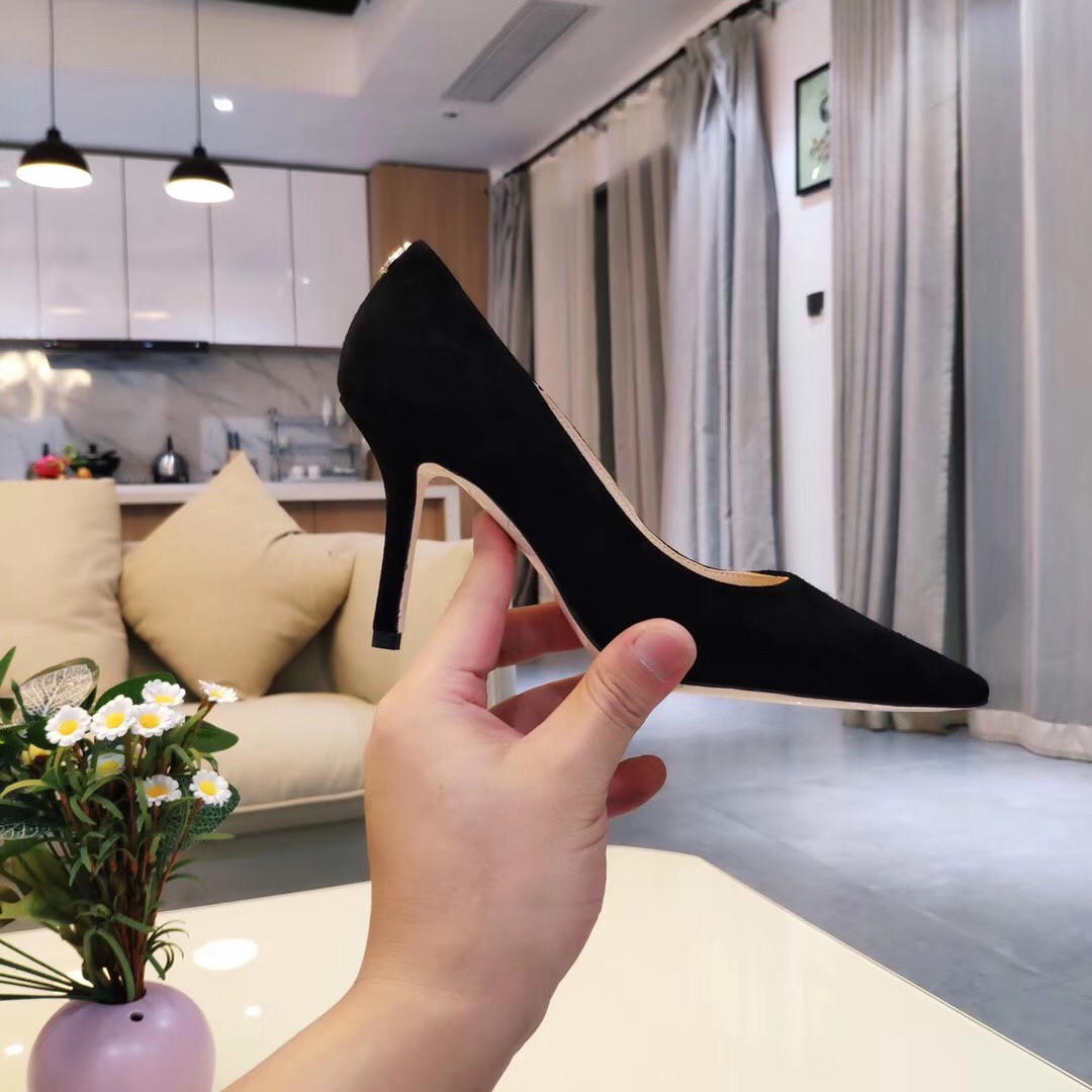 LOVE in buttery suede is the definition of elegance. Jimmy Choo’s heels are cut higher on the foot, allowing for more coverage, and this pair is designed with a dramatic point toe. They are finished with a thin 85mm stiletto heel to confidently elongate your legs and a gold JC emblem on the heel.