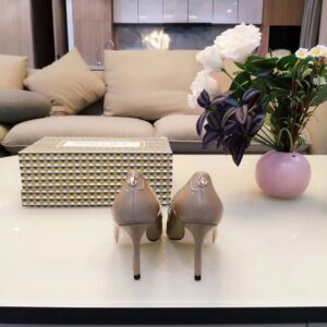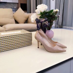 Jimmy Choo’s ‘Love’ pumps are updated for Resort ’19 – the toe is dramatically pointier and cut higher on the foot for more coverage. This pair has been made from glossy patent-leather and goes with pretty much anything in your closet. The 85mm pin-thin heel creates a leg-lengthening effect.