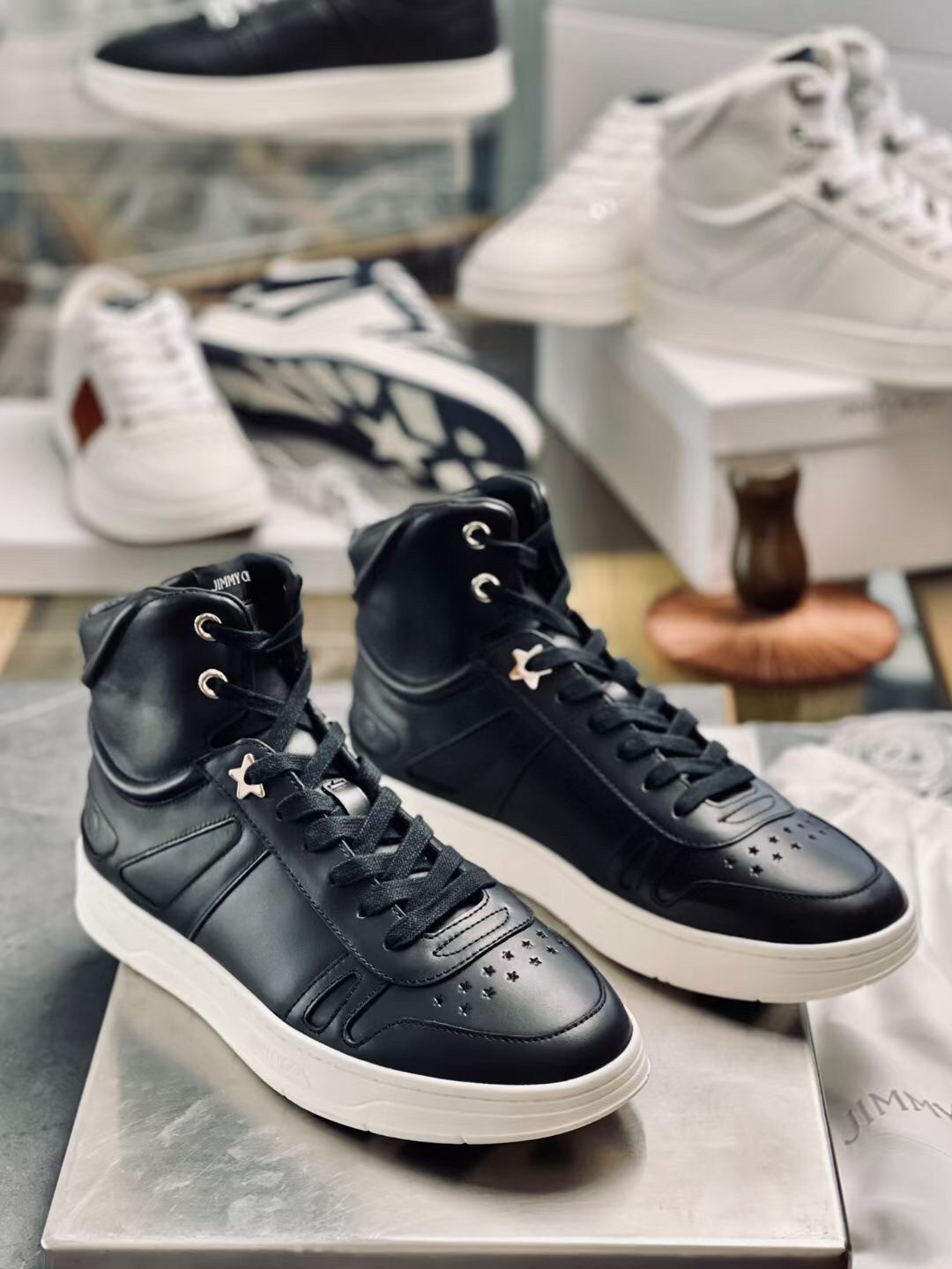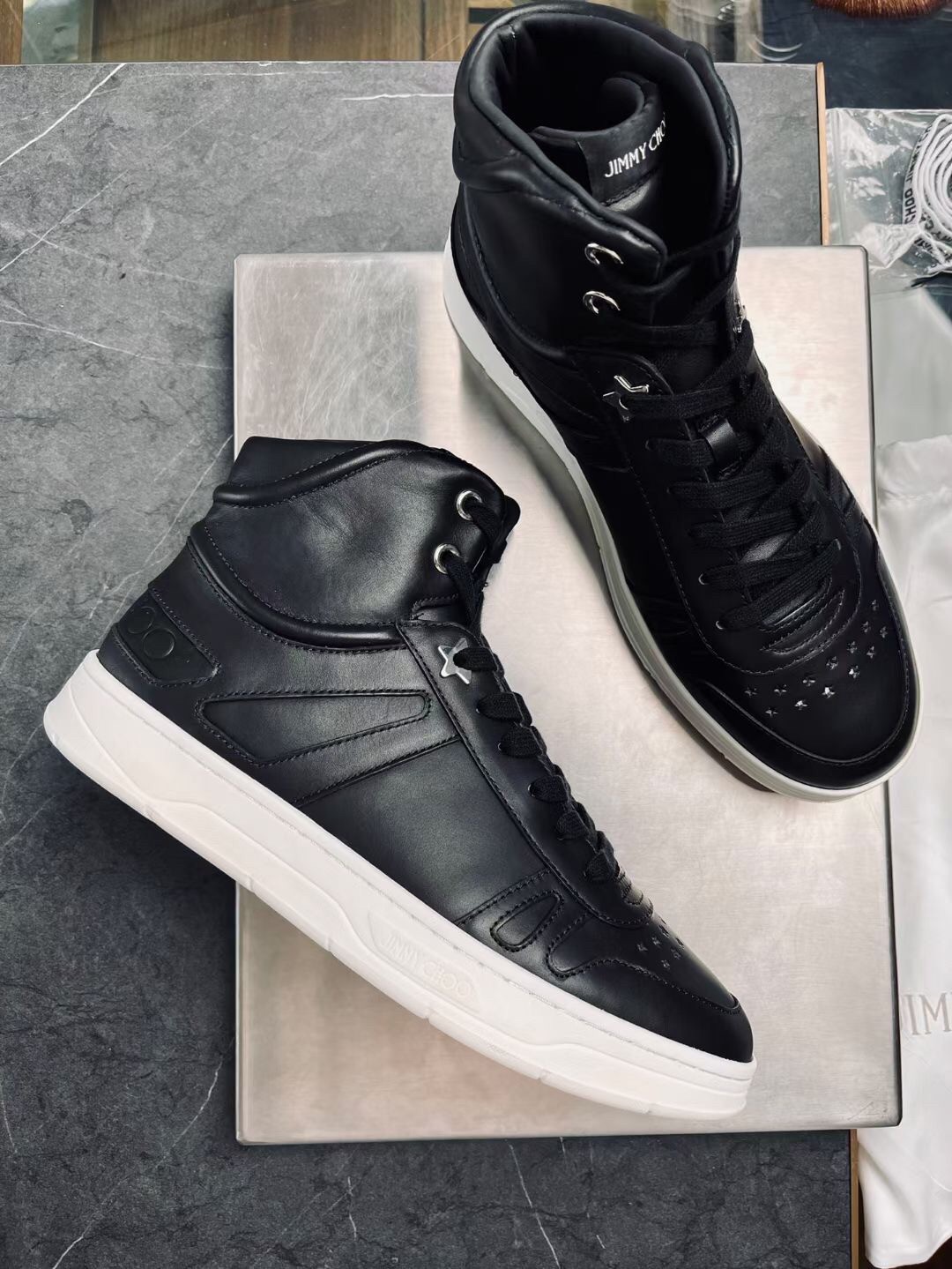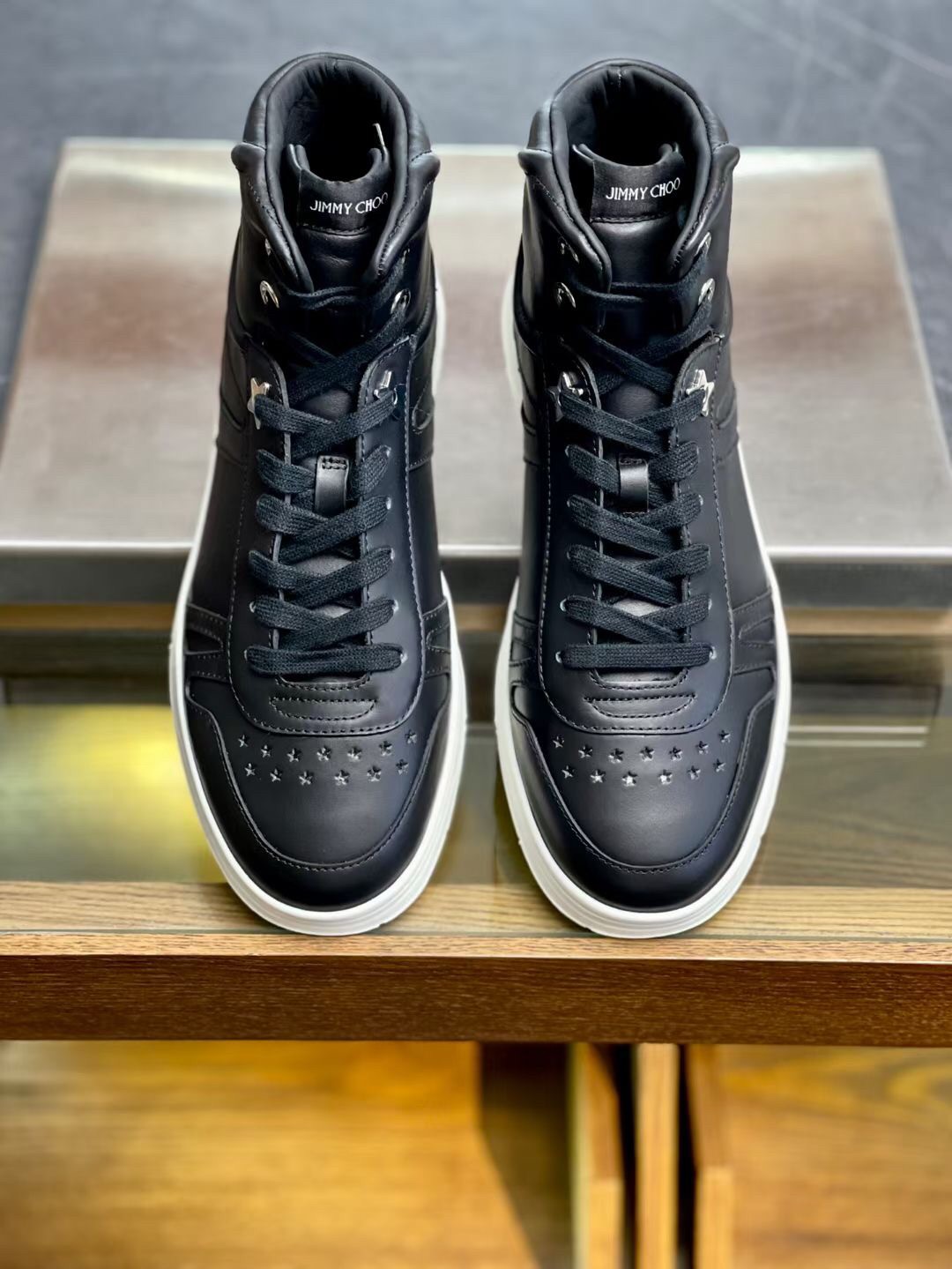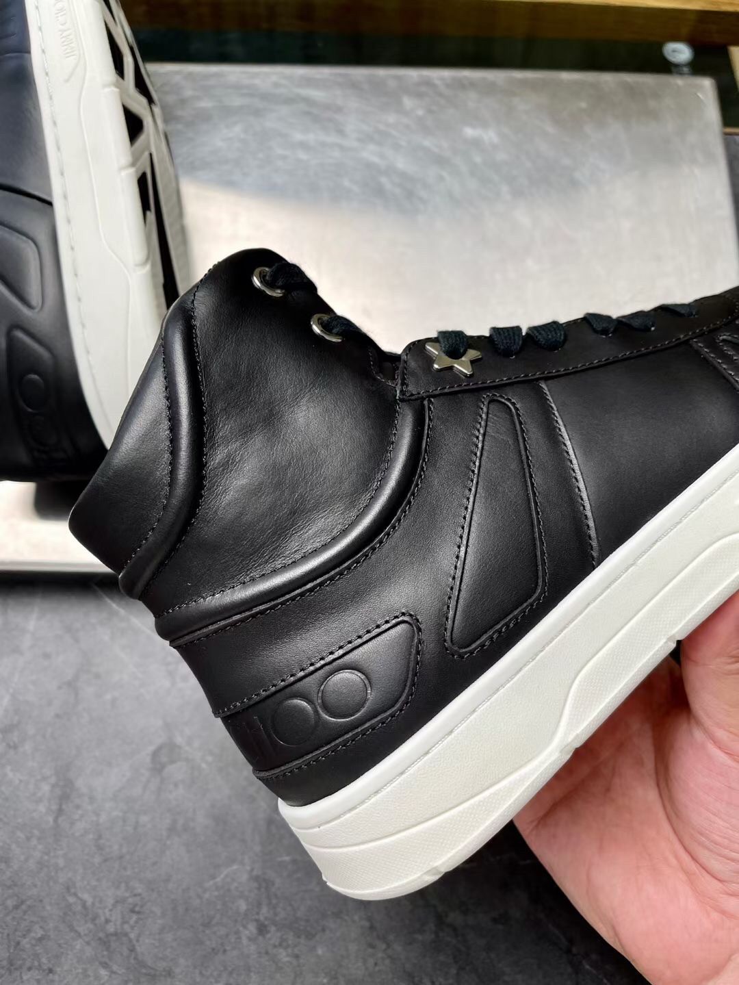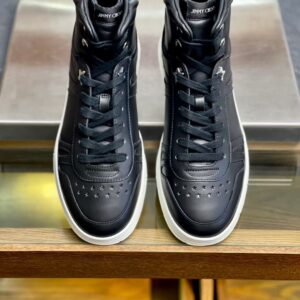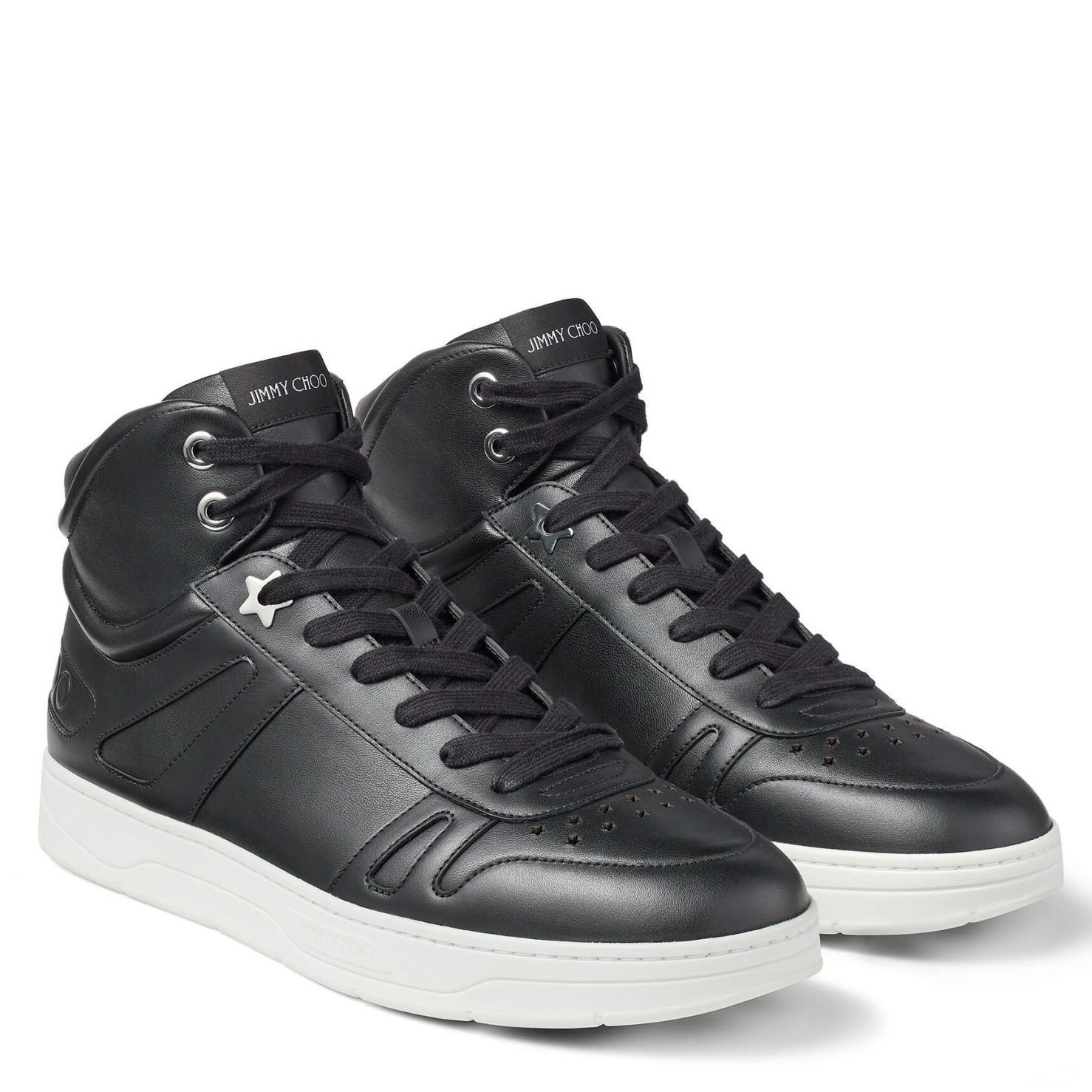 The iconic HAWAII trainer has evolved into a high-top style. Crafted from calf leather, it is presented with a vintage-inspired sole and padded cuff, alongside traditional characteristics of the classic HAWAII; star eyelets, a lace-up front and Jimmy Choo embossing at the heel. Pair easily with any off-duty outfit.