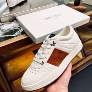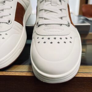 Jimmy Choo’s ‘Hawaii’ sneakers are detailed with suede side panels, silver star eyelets and starry perforations on the round toes. They’re made from white leather and set on chunky 45mm rubber soles. Wear yours to ground everything from dresses to jeans.