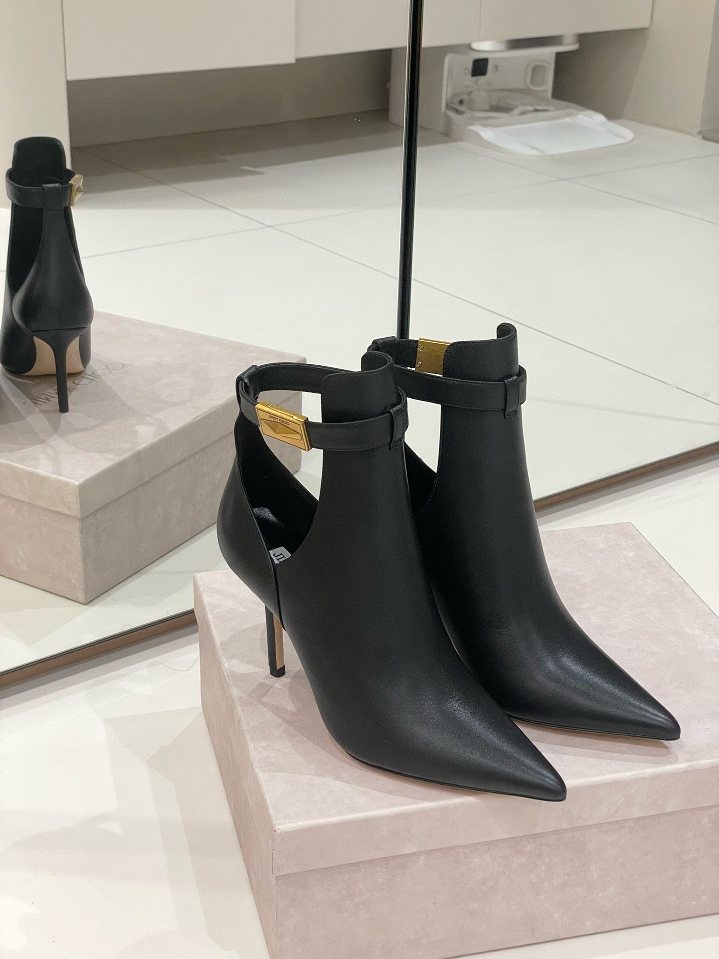 In luxe calf leather, the Jimmy Choo’s Nell ankle boots are designed to a classic pointed-toe silhouette with a slim heel. The cut-out design offers a modern edge and features gold-tone hardware signature to our Diamond collection. Wear to elevate looks with effortless sophistication.
