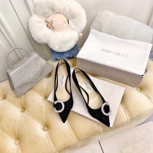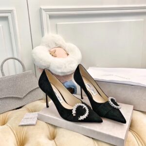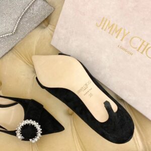 Crystal-embellished curved buckles – borrowed from the hardware on Jimmy Choo’s accessories – up the glamour of the Saresa pumps. Made from black suede, they have pointed toes, 85mm stiletto heels and comfort-boosting leather insoles.