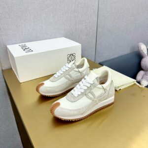 Loewe Women’s Flow Runner Sneakers in White Brushed Suede