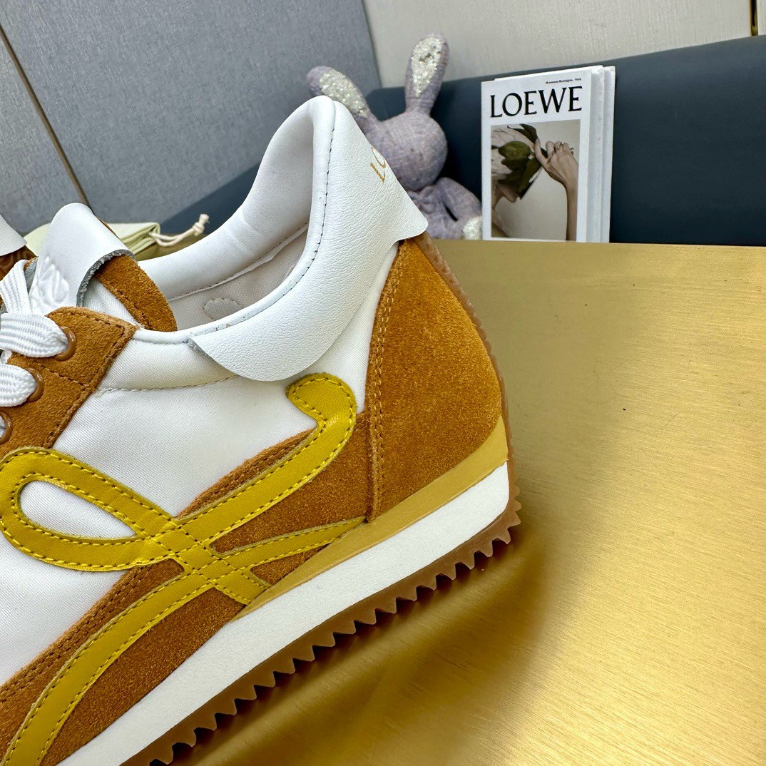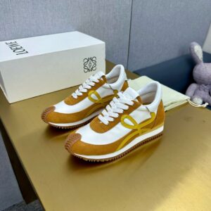 The latest iteration of Loewe’s signature ‘Flow’ sneakers is designed in collaboration with Paula’s Ibiza. Channeling the laidback ease of the Balearic, they’re made from suede and shell in a muted palette and have contrasting leather trims, including the signature script ‘L’ logo.