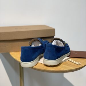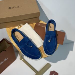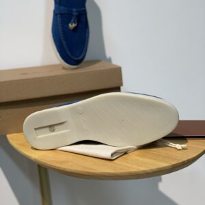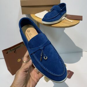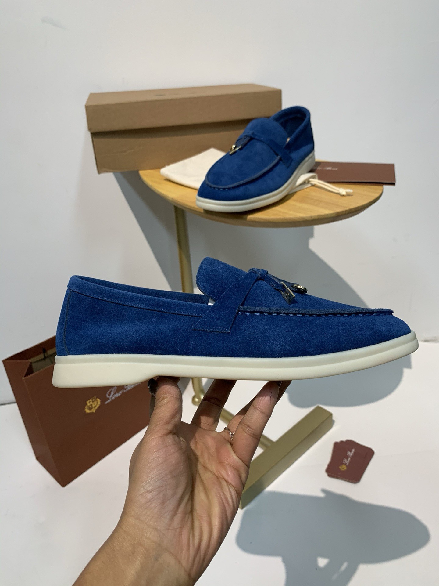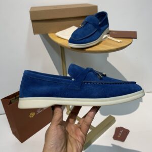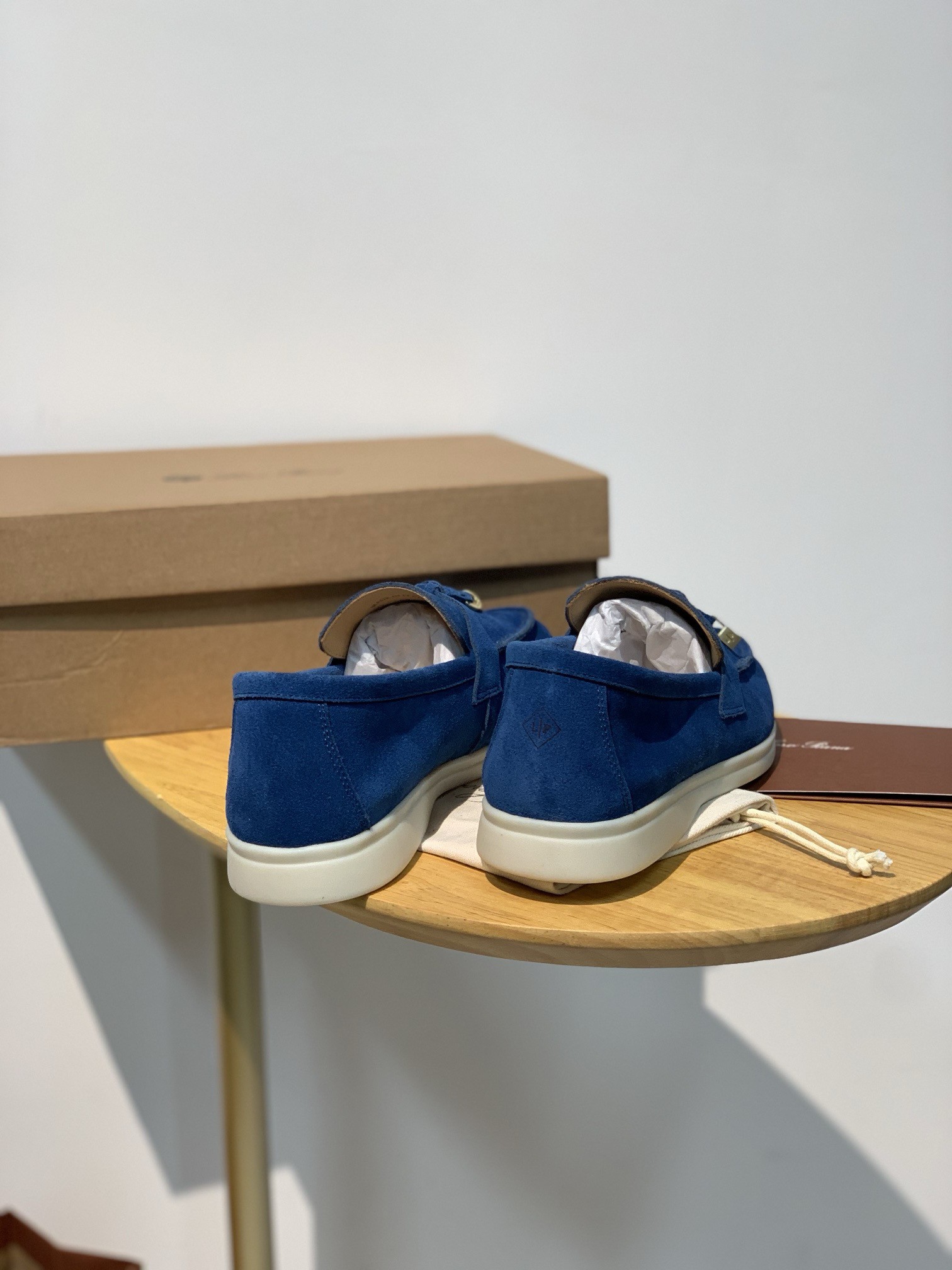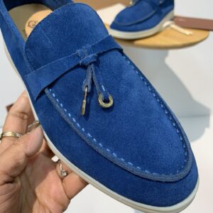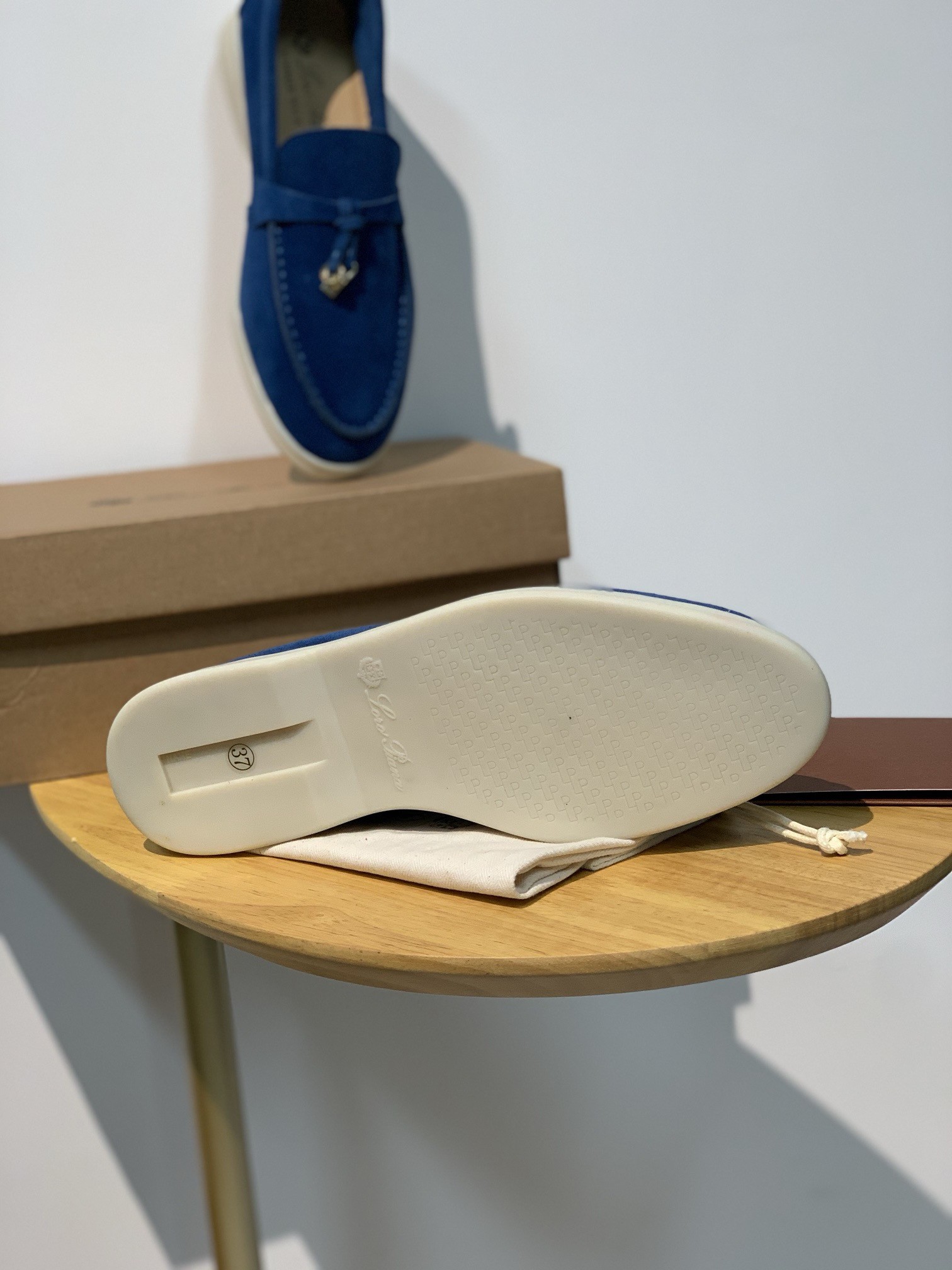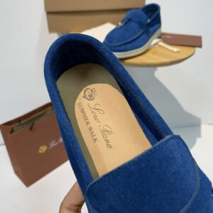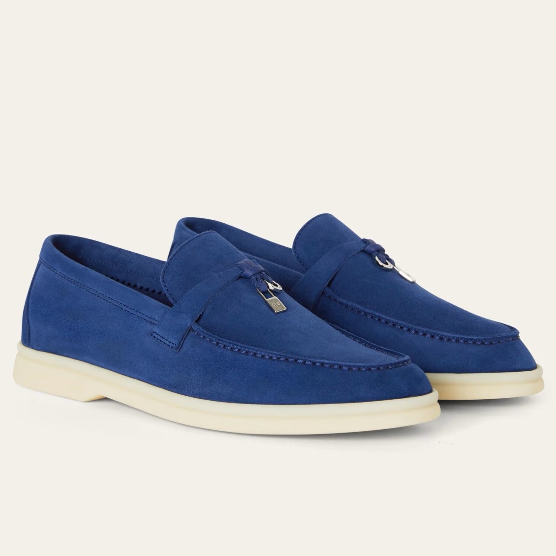 Loro Piana Women’s Summer Charms Walk Loafers in Blue Fluorite Suede Leather