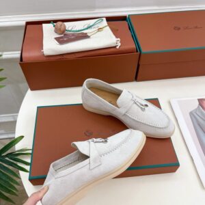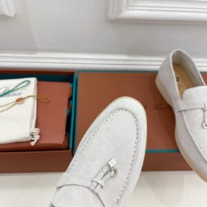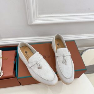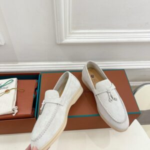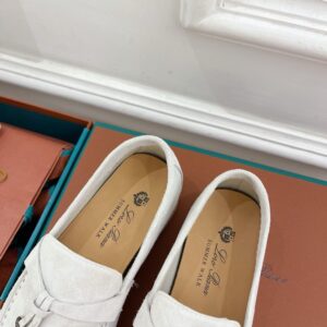 Loro Piana Women’s Summer Charms Walk Loafers in White Suede Leather