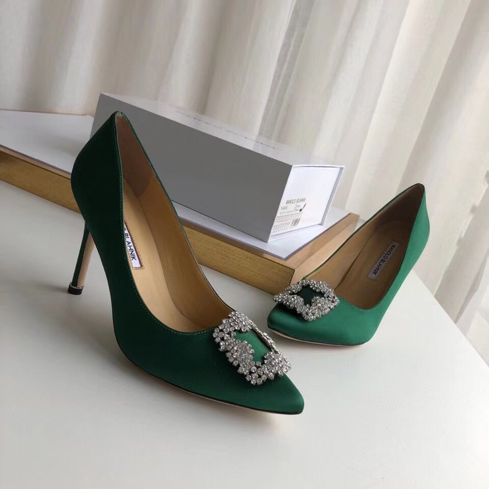 Manolo Blahnik Hangisi 105 Pumps In Green Satin